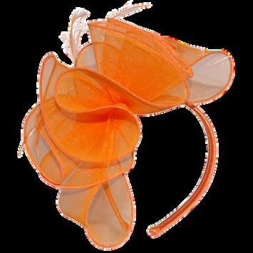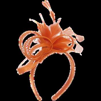 Sinamay loops and feather flower on headba