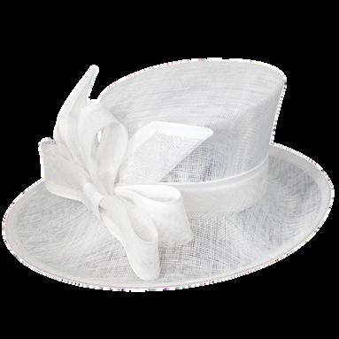 3 layer sinamay medium brim hat with slight turnup and large bow trim.