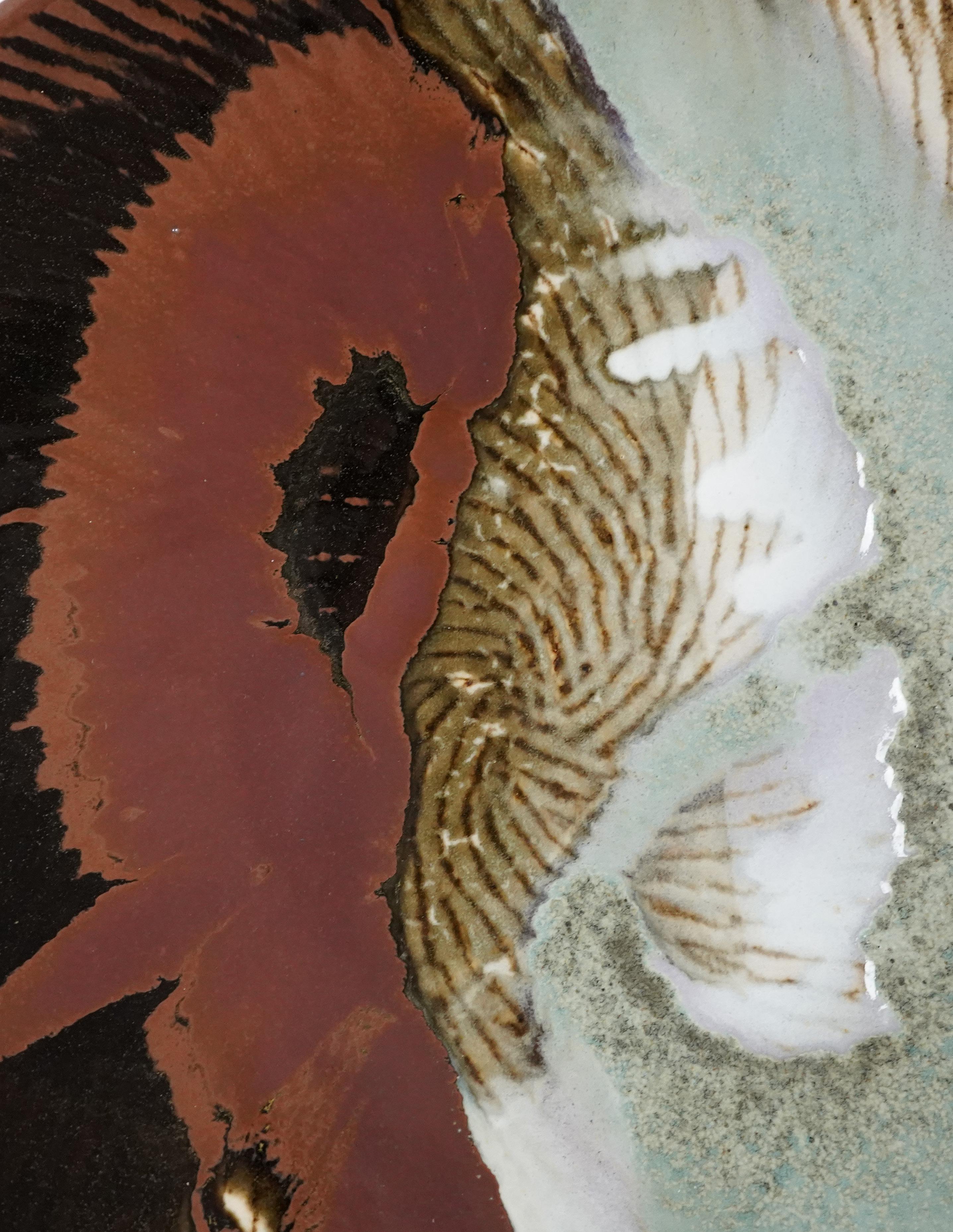 Large Platter with Iron Fish Trailed on Rope Impressed Inlay 掛合