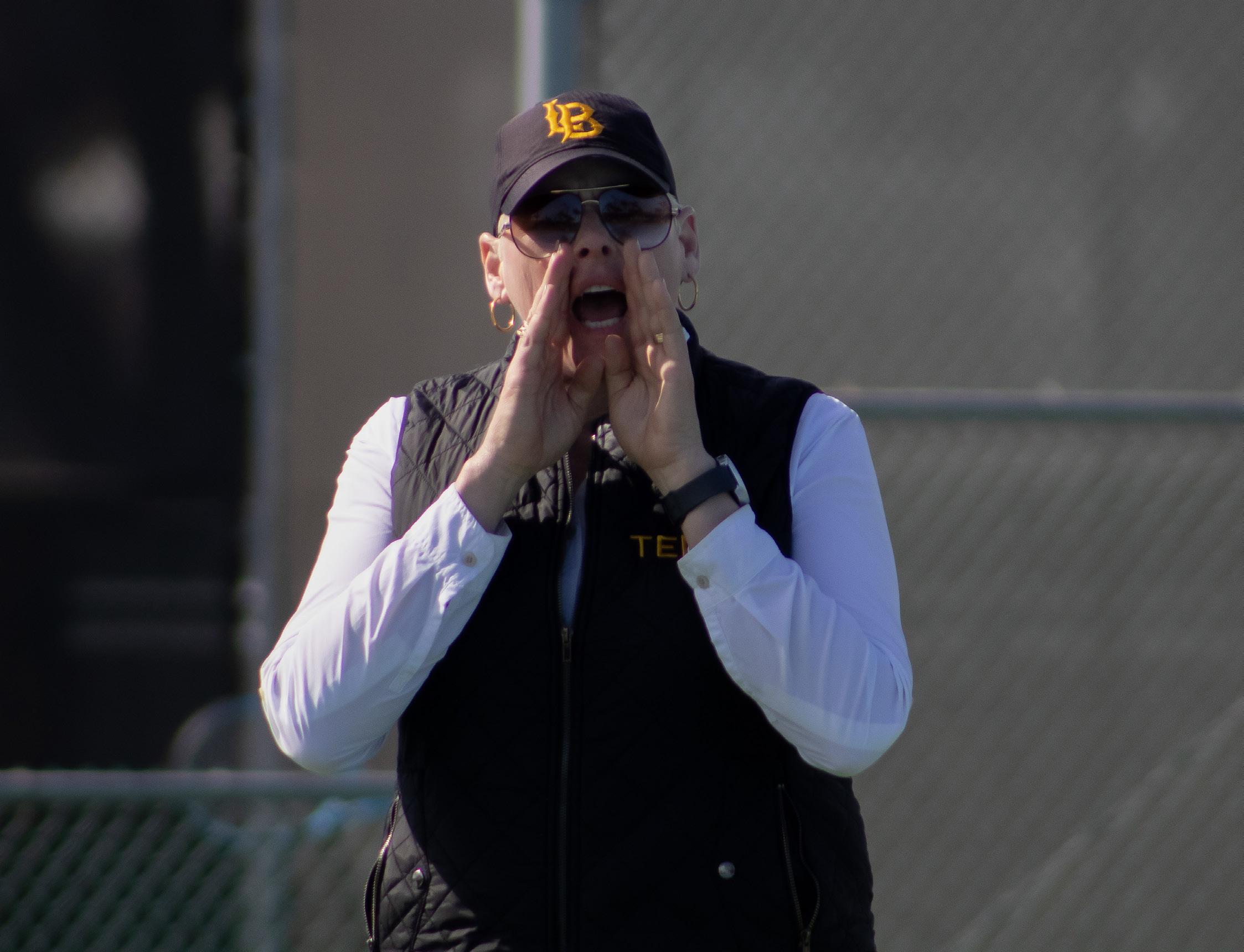 MARK SIQUIG / Daily Forty-Niner LBSU women’s tennis head coach giving instructions to her team as they prepare for their matchup versus Boston University.