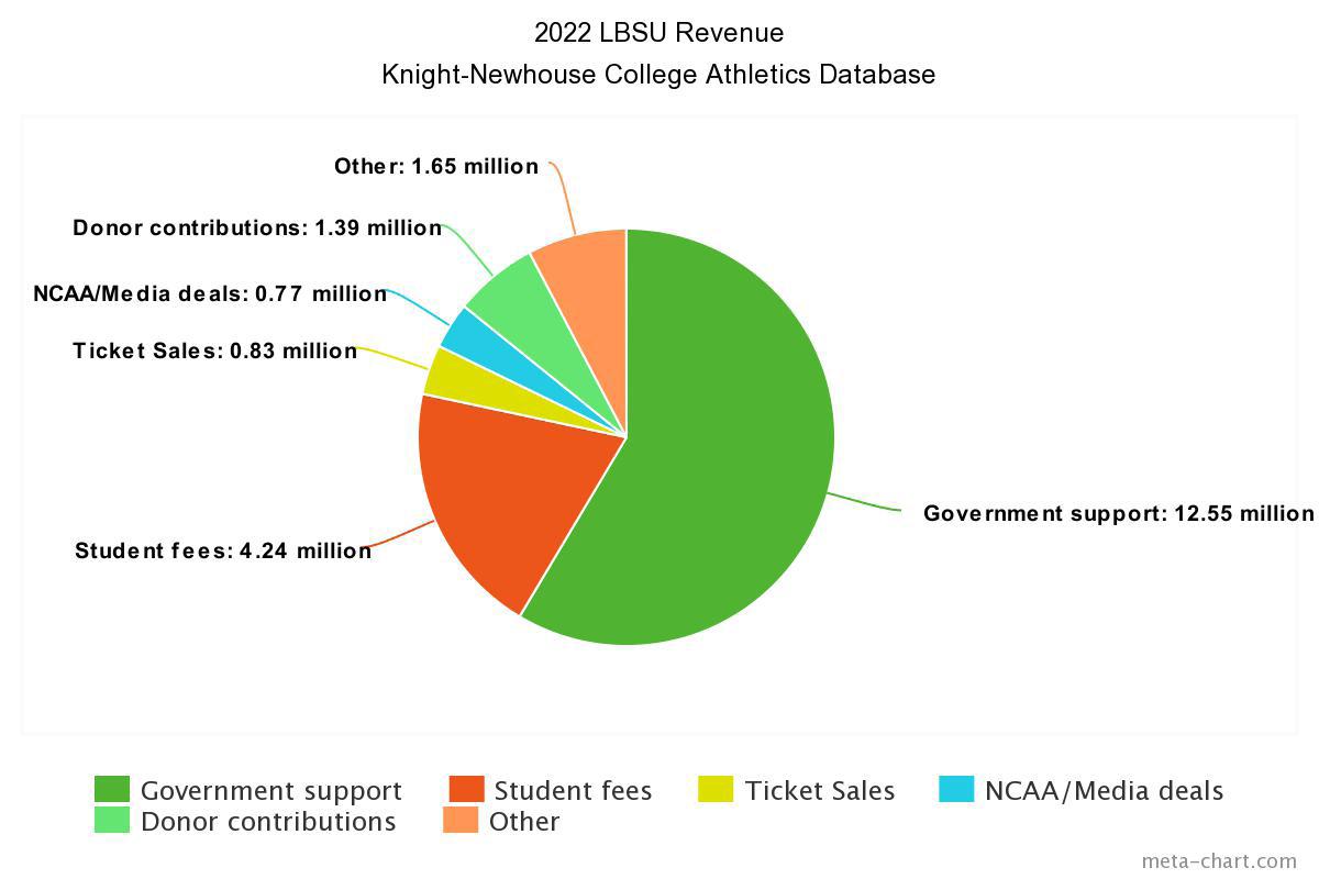 To start, in 2022, the Knight-Newhouse College Athletics Database reported that the LBSU athletic department earned around $22 million in revenue.