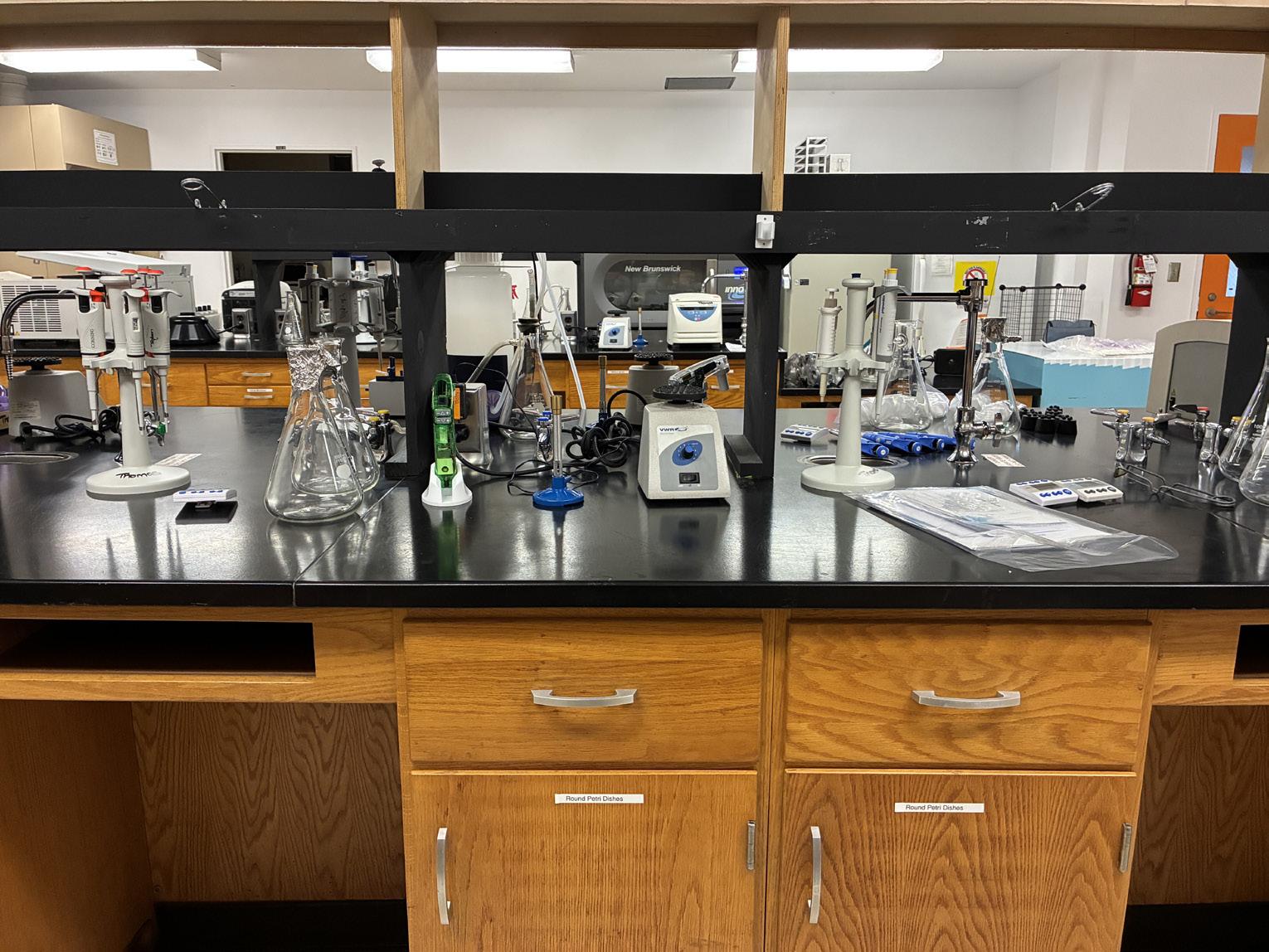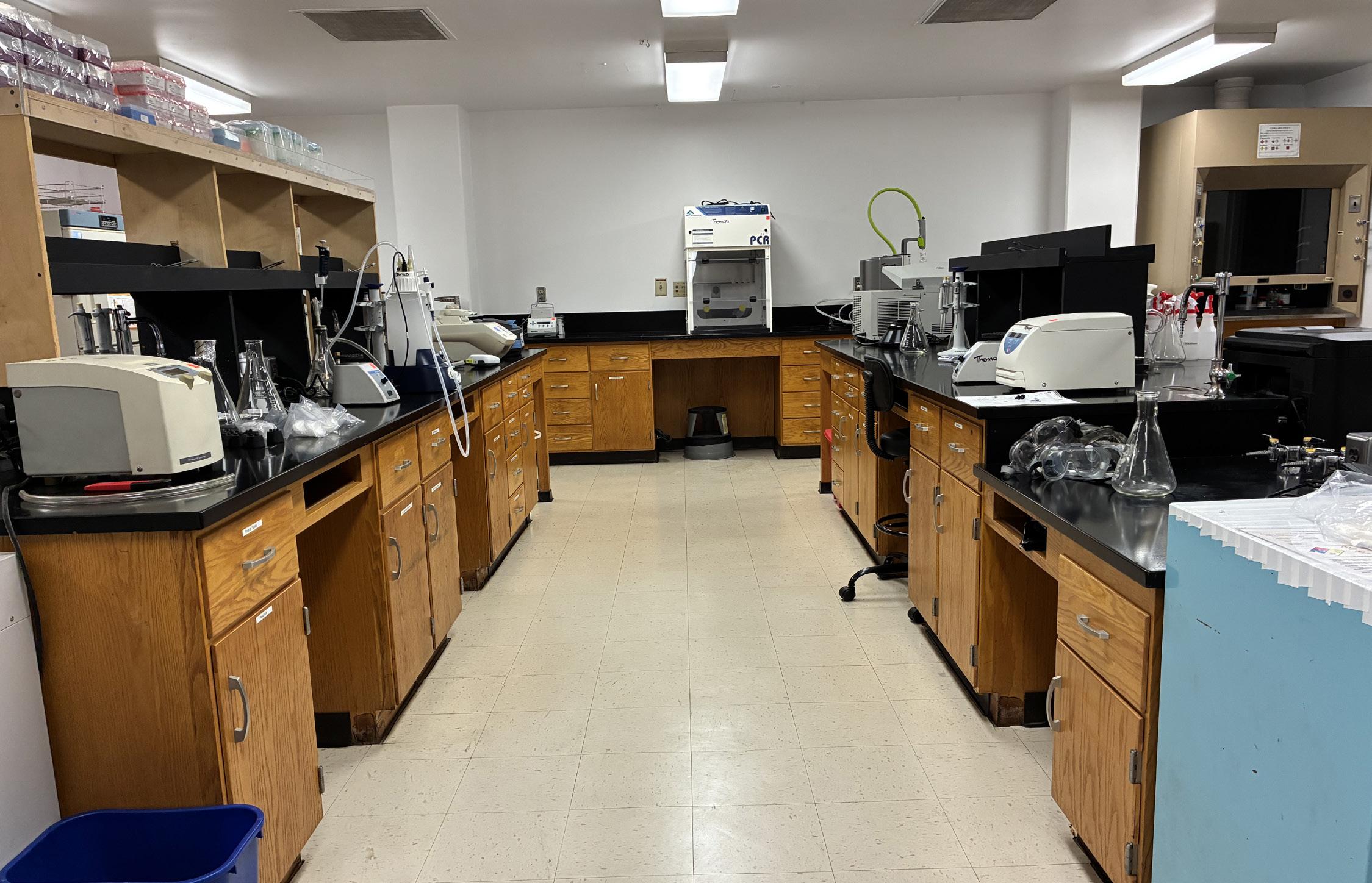 One of the labs in the microbiology building, where Lamar Thomas works to develop preventative strategies for GBA and GAS bacteria and advance women’s health research. Photo courtesy of Lamar Thomas.
