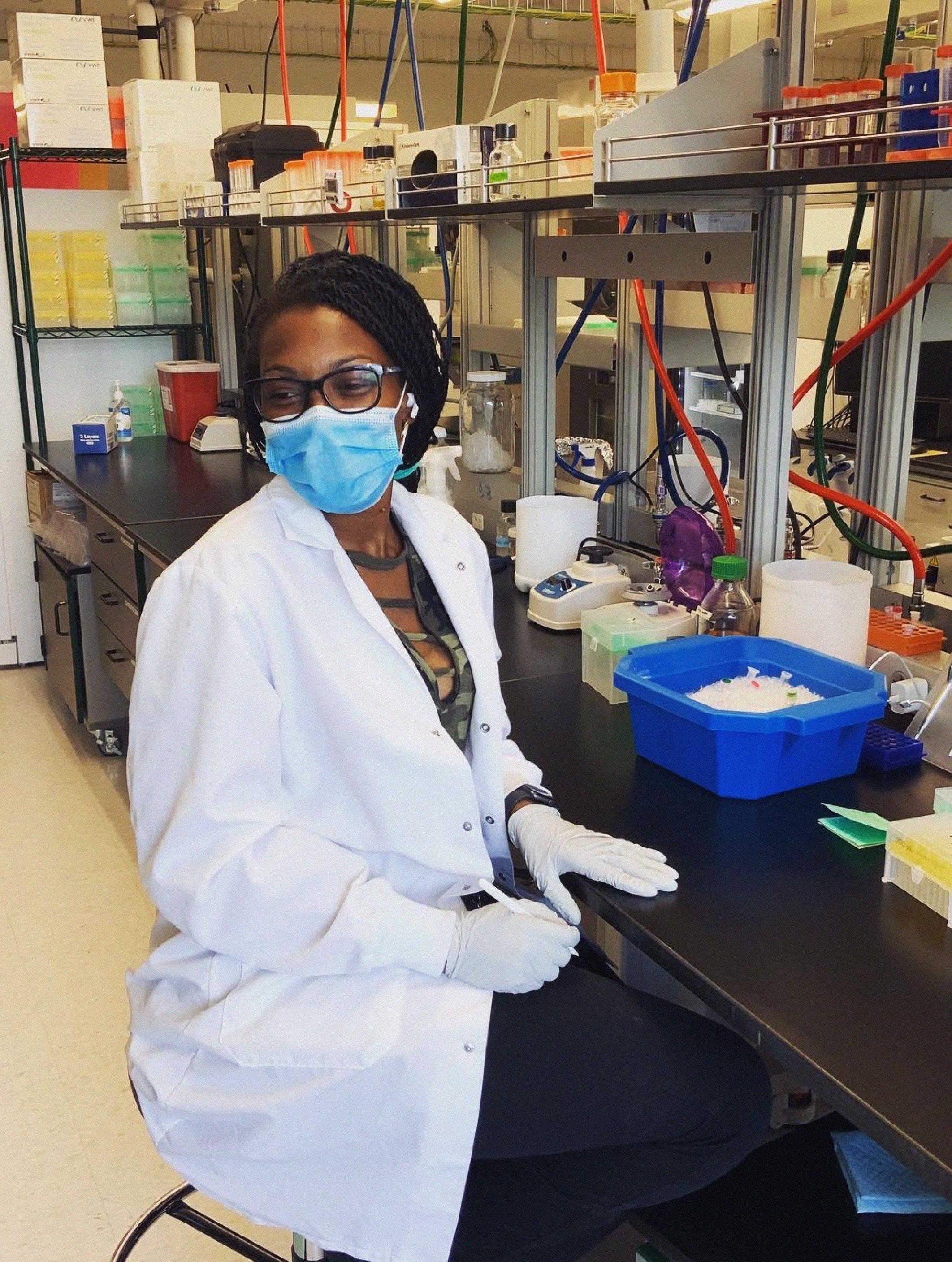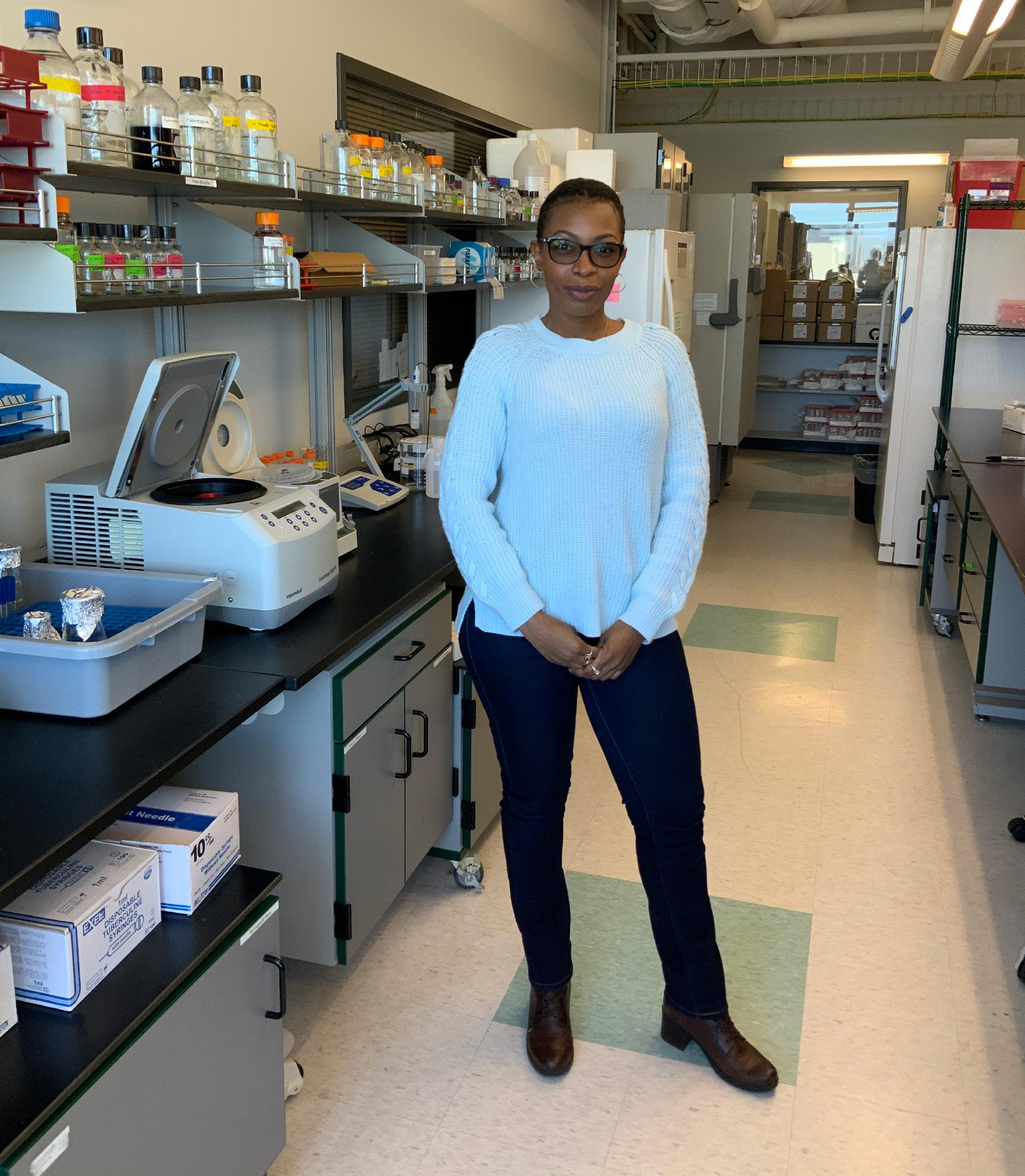 Lamar Thomas, CSULB assistant professor of biological sciences, in her natural element: the lab.