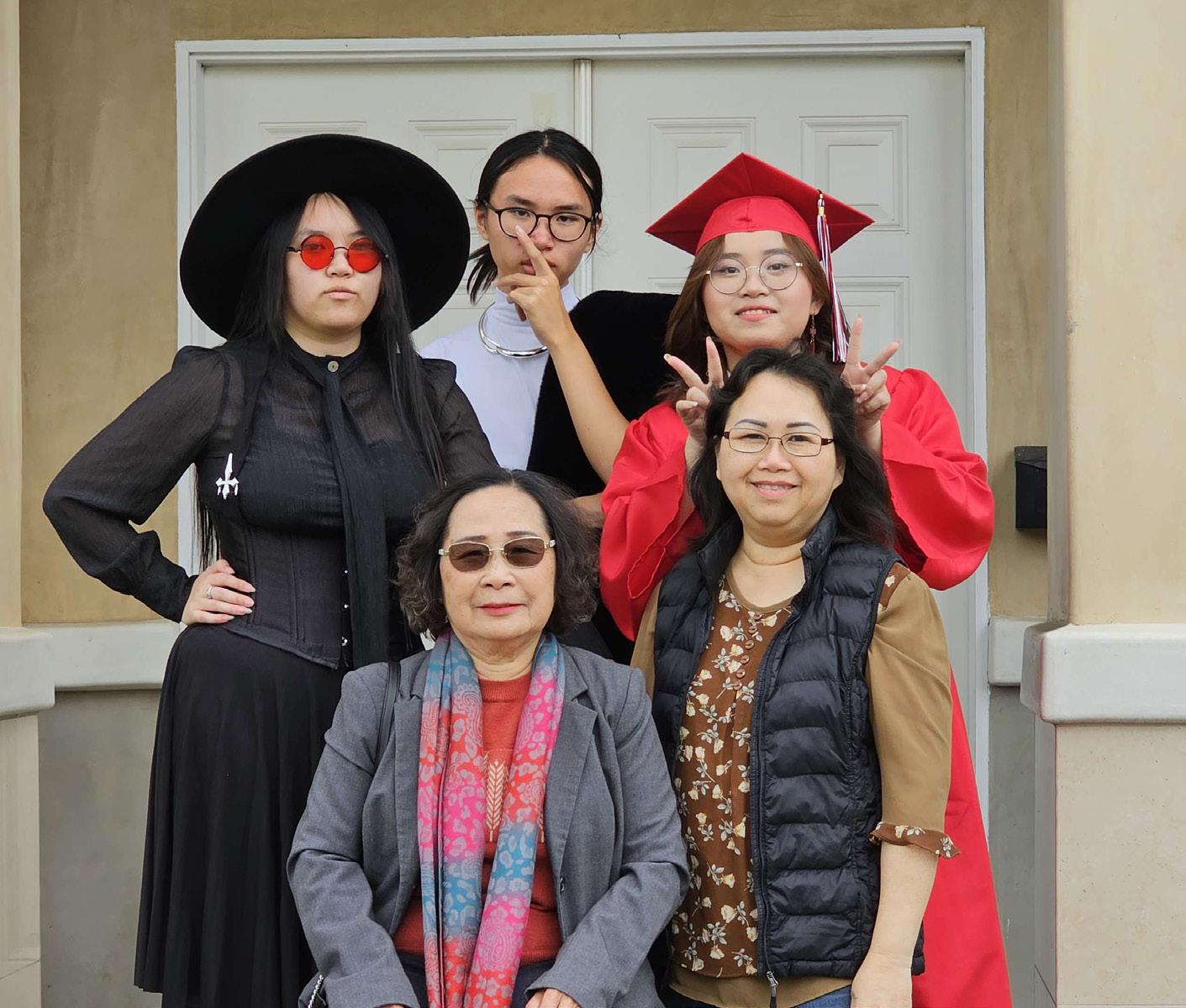 Family photos of Tamnhu Tran and her sisters, mother and grandmother. Pictured are grandma Jenny Nguyen (front left), mother Susan Luu (front right), older sister Taman Tran (middle left), Tamnhu Tran (middle right) and younger sister Petra Tran (back). Photos courtesy of Tamnhu Tran.
