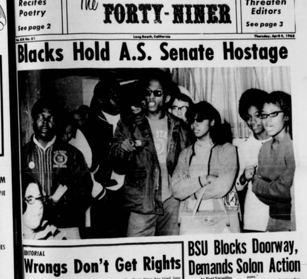 rent, formerly the Daily Forty-Niner’s archives, the action by the Black Student Union resulted in two resolutions passed by the student government to address Black representation on campus issues.