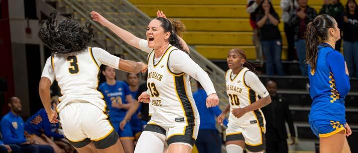 UCR’s (6-14) overtime-forcing three was blocked by the lengthy 6-foot-2 Akot, stamping The Beach’s 75-72 victory as Pepe slammed the ball screaming with emotion as she celebrated with her teammates.