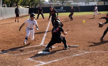 Right: LBSU player scores a run for The Beach against the Oregon State Beavers at the LBSU Softball Complex on Feb. 6.