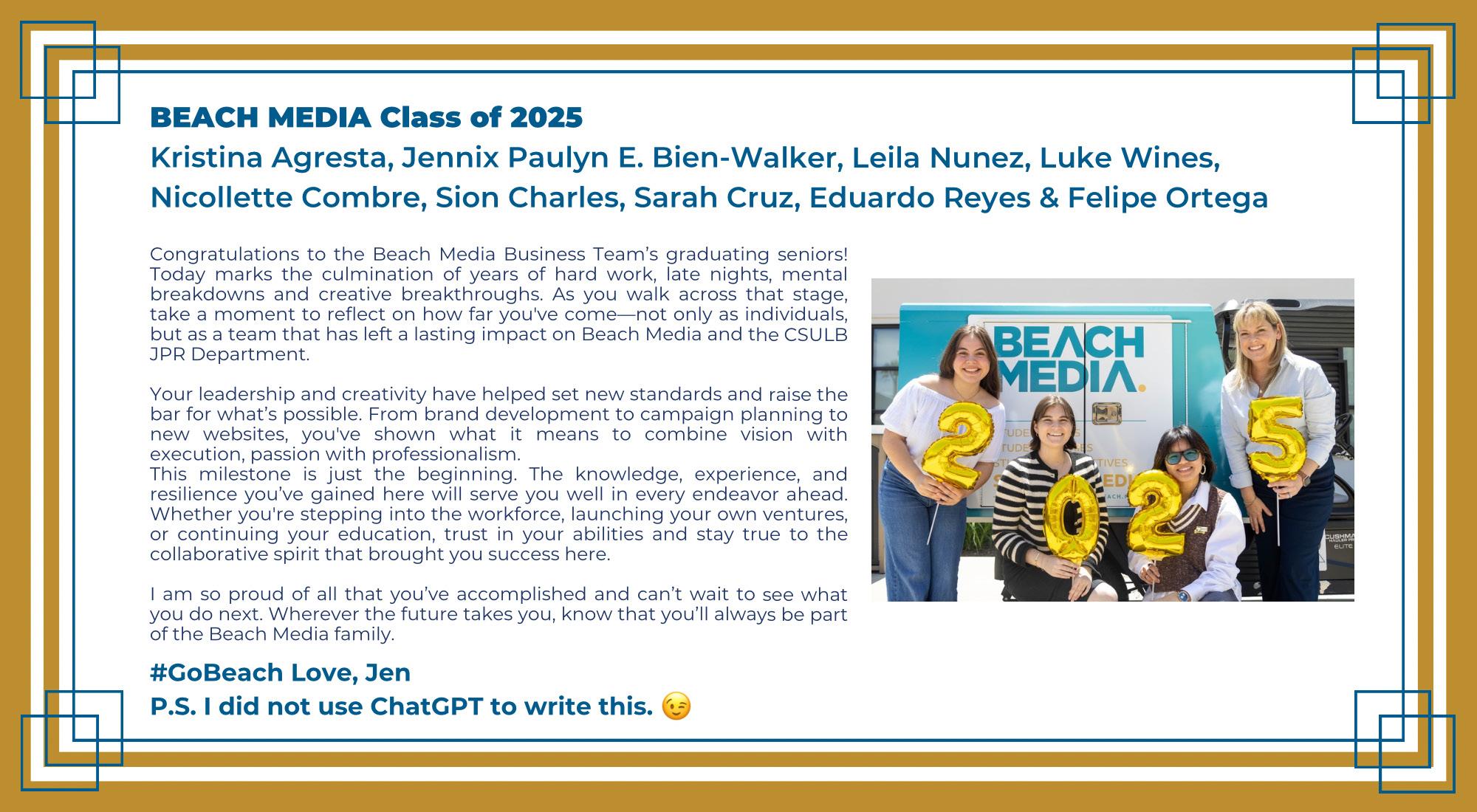Students moving on to postgrad creative careers should not lose sight of the opportunities at our disposal here, in this iconic city and soon-to-be home of the Long Beach Bowl in 2026.