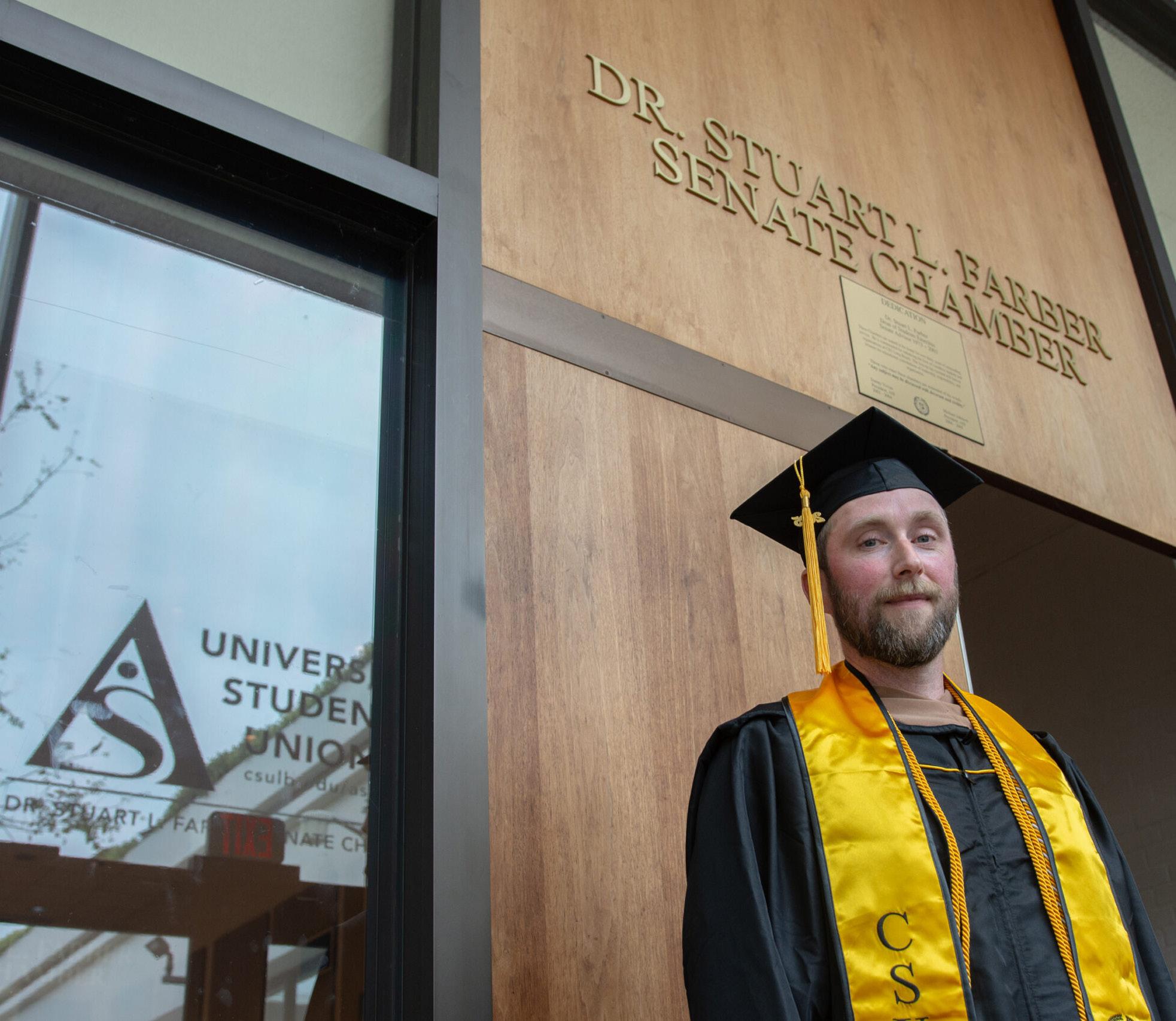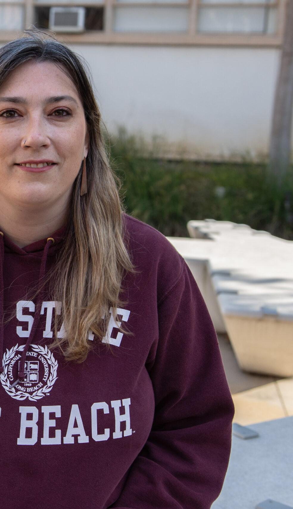left: Alma Villaescusa Pineda received her bachelor’s degree in psychology in 2016. She came to Long Beach State to earn a second bachelor’s degree in computer engineering and will be graduating this month. Krystal Mead, 38, is a first-generation college student graduating from Long Beach State with a bachelor’s degree in sociology this month. Mead relied on the Student Success Center to support her in her education journey. Quinn Bentley is a father of two and worked with special education students in public schools for a decade before attending Long Beach State to earn his master’s degree. Bentley will be graduating with a master’s in business administration this month.