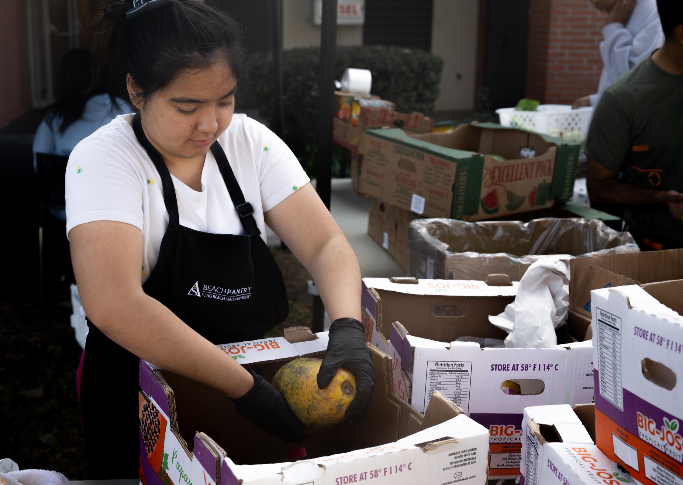 Update caption: Beach Pantry volunteers sort papayas and various other produce items on Nov. 4. Ever since the Oct. 1 government shutdown, more students have been getting their food necessities from The Beach Pantry.