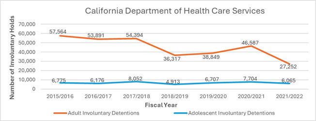The above graph is the number of involuntary holds reported by the California Department of Health Care Services.
