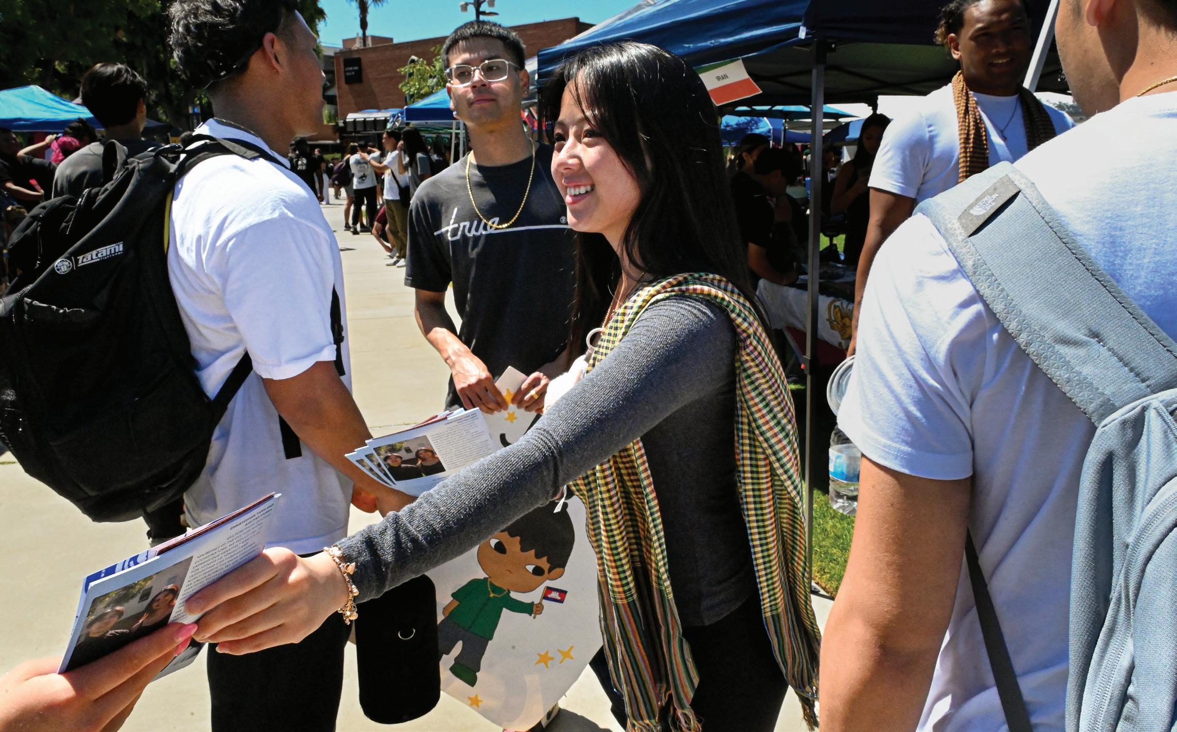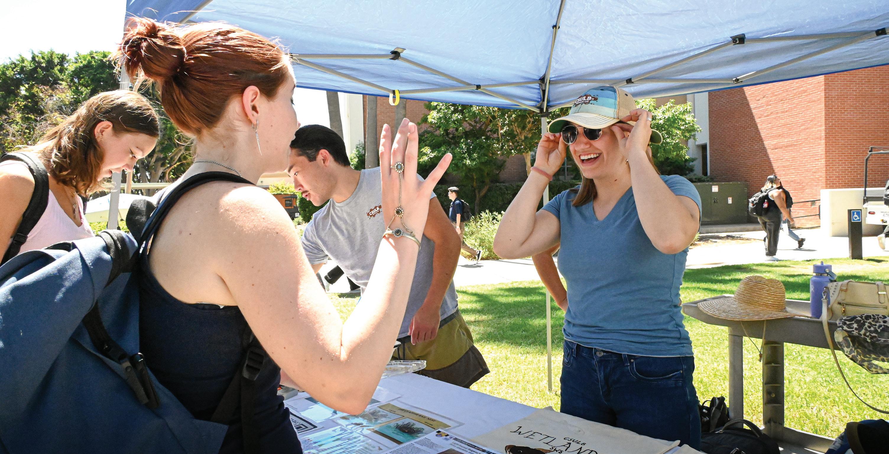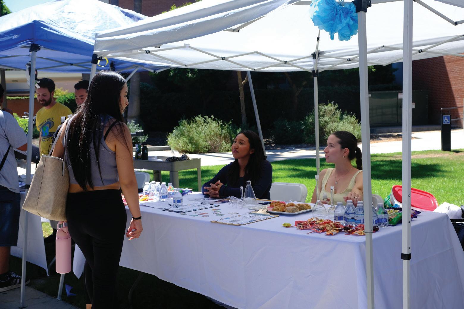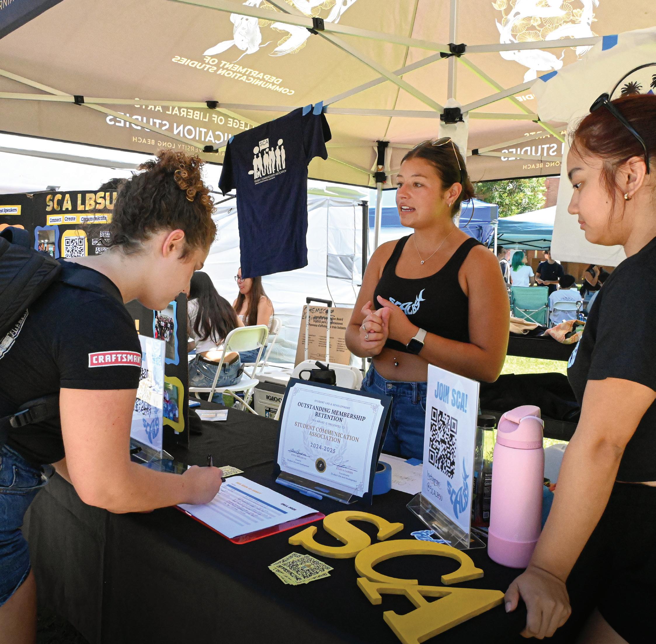 REHANSA KULATILLEKE/Long Beach Current Makenna Ends, third-year film production major and co-president of the Producer’s club, uses a megaphone to garner attention towards their booth.
