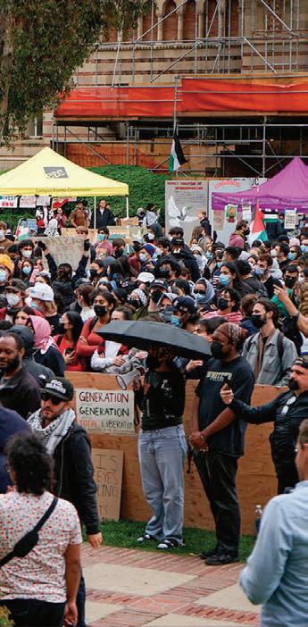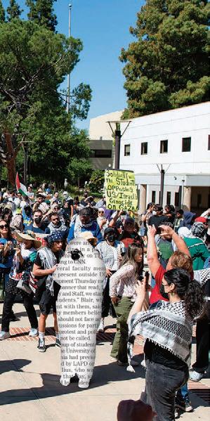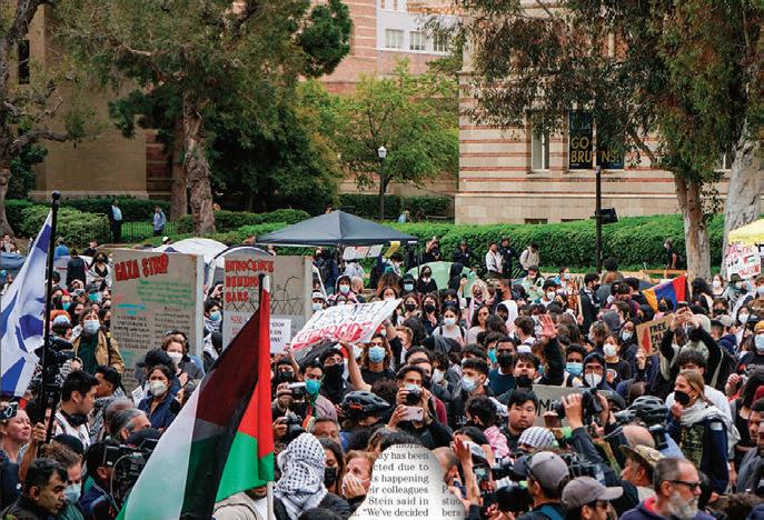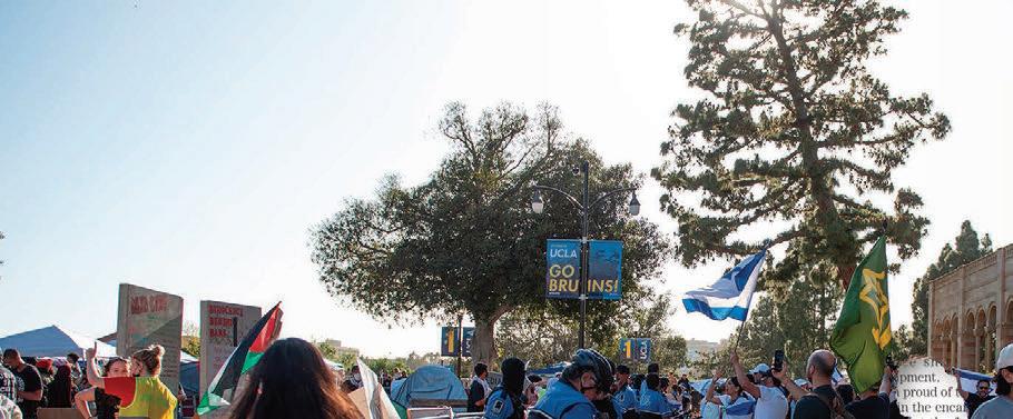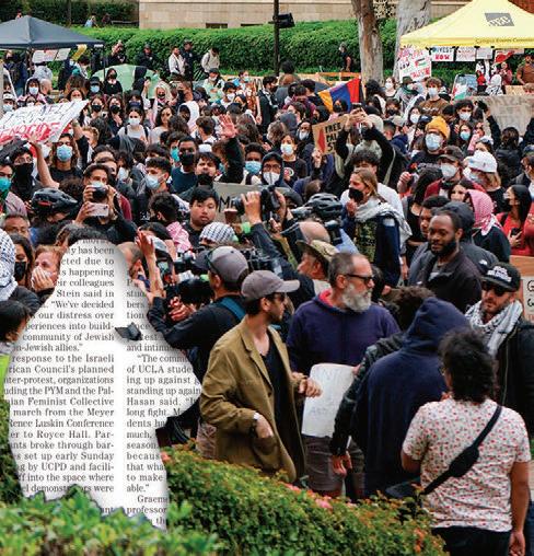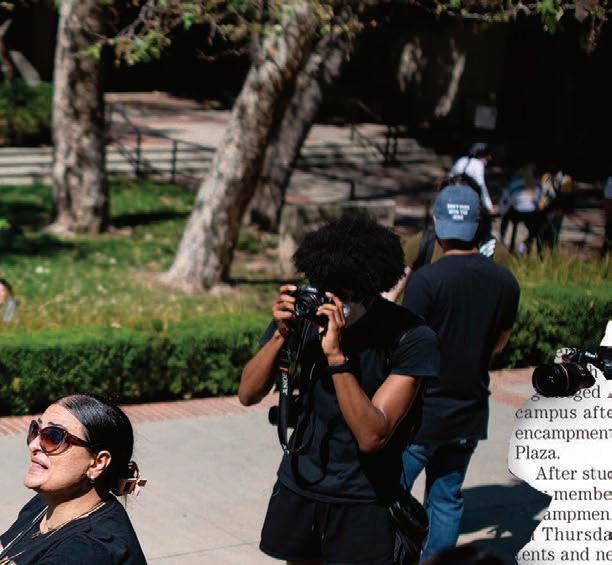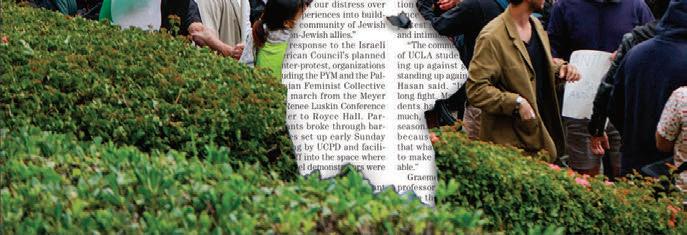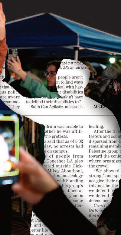 These 64 pages are filled with 13 amazing stories, many of which come from fellow soon-to-be graduates reflecting on their time at UCLA. Looking back on her applications, Aisosa Onaghise explores traumadumping culture in college admissions. Reflecting on her time in the Bearing Witness program, Rachel Rothschild explores how Holocaust remembrance is evolving on campus and beyond. And a year after the police sweep of UCLA’s Palestine Solidarity Encampment, Anna Dai-Liu explores the mental health consequences for student journalists who report on violence.