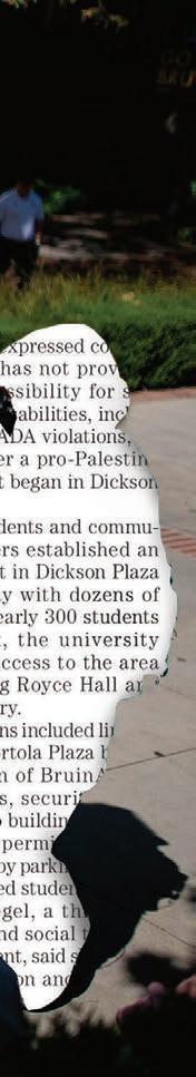 The Daily Bruin (ISSN 1080-5060) is published and copyrighted by the ASUCLA Communications Board. All rights are reserved. Reprinting of any material in this publication without the written permission of the Communications Board is strictly prohibited. The ASUCLA Communications Board fully supports the University of California’s policy on non-discrimination. The student media reserve the right to reject or modify advertising whose content discriminates on the basis of ancestry, color, national origin, race, religion, disability, age, sex or sexual orientation. The ASUCLA Communications Board has a media grievance procedure for resolving complaints against any of its publications. For a copy of the complete procedure, contact the publications office at 118 Kerckhoff Hall. All inserts that are printed in the Daily Bruin are independently paid publications and do not reflect the views of the Editorial Board or the staff.