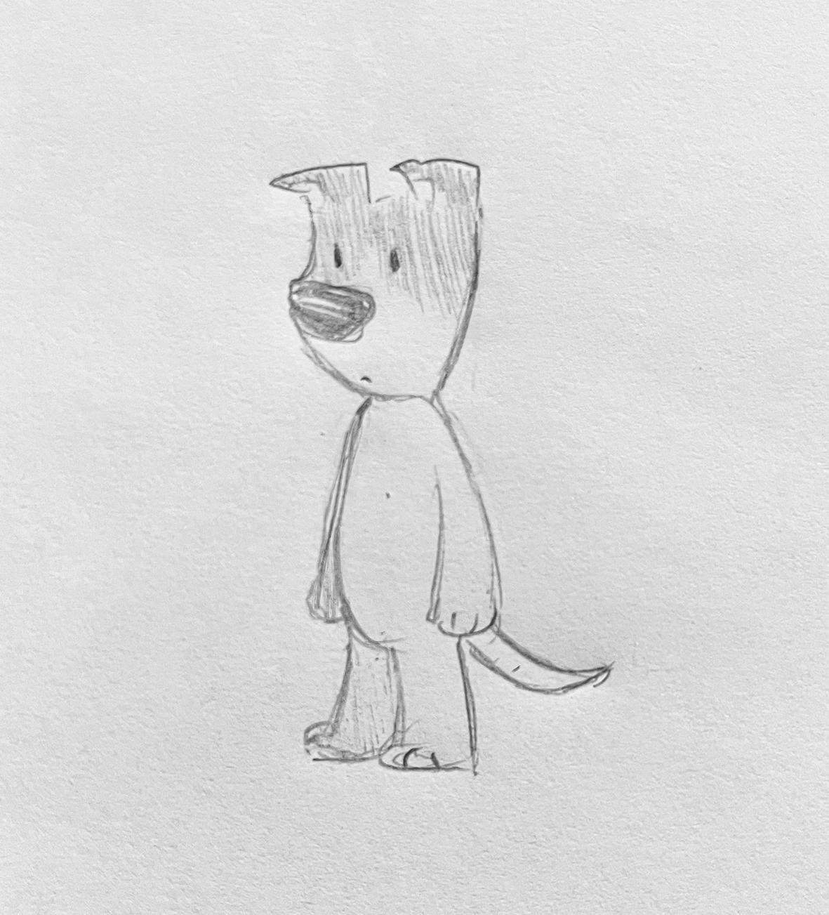 本身的感受 ,將透過蠟筆媒材搭配不同技法的使 用 ,在一特定框架中 ,描繪出他人對自我形象詮 釋的質感與紋理 。其中該框架的外觀為具有小狗 意象之角色(如圖) ,是取自日後參與少家法院藝