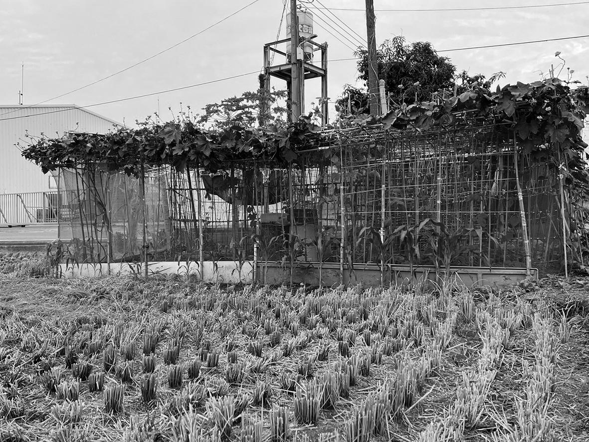 離析 ,從一個群體變成數個個體 。老家位於大 寮 ,許多長輩並不會講中文都是用台語溝通 ,大 多數女性長輩都是文盲 ,導致科技無法幫助情感 維繫 。因緣際會下大姑取得一小塊地 ,於是開啟 整項計畫 ,我們在那塊地上搭起一個菜棚 ,並種 植各種蔬菜水果 ,一開始我們都是種植者 ,隨著 時間的推進 ,我的角色逐漸變成採收者與維繫者 , 大姑會採集自家夠吃的量 ,剩下的就是我負責採