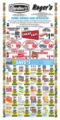 662-286-6244 410 CASS STREET • CORINTH, MS SAVE CASH BY SHOPPING ROGERS’ EVERYDAY LOW PRICES STORE: MON-THURS 7AM TIL 9PM, FRI & SAT 7AM TIL 9PM, CLOSED SUN 1% To Your Church at Rogers’ www.RogersSupermarket.com