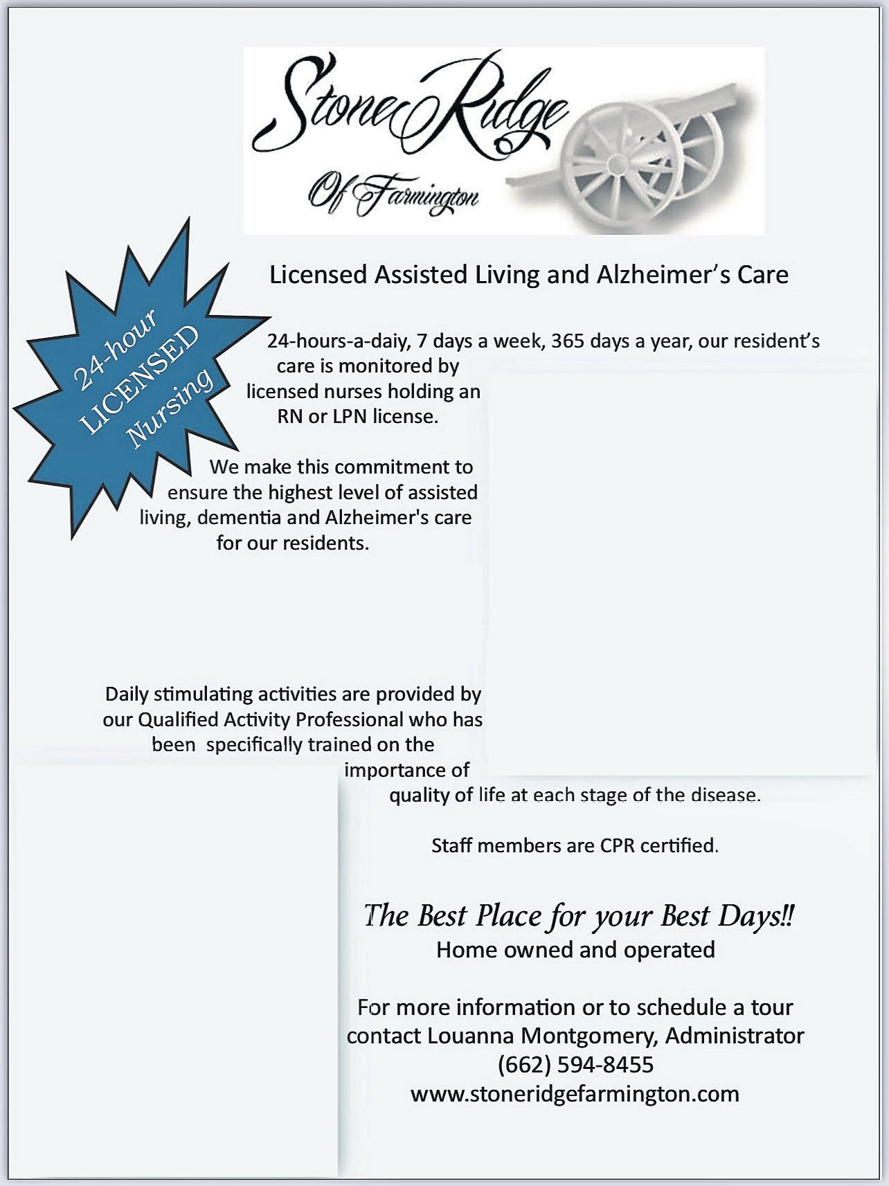 Our state-of-the-art facility is licensed by the Mississippi State Department of Health for assisted li ving and Alzheimer ’s care.