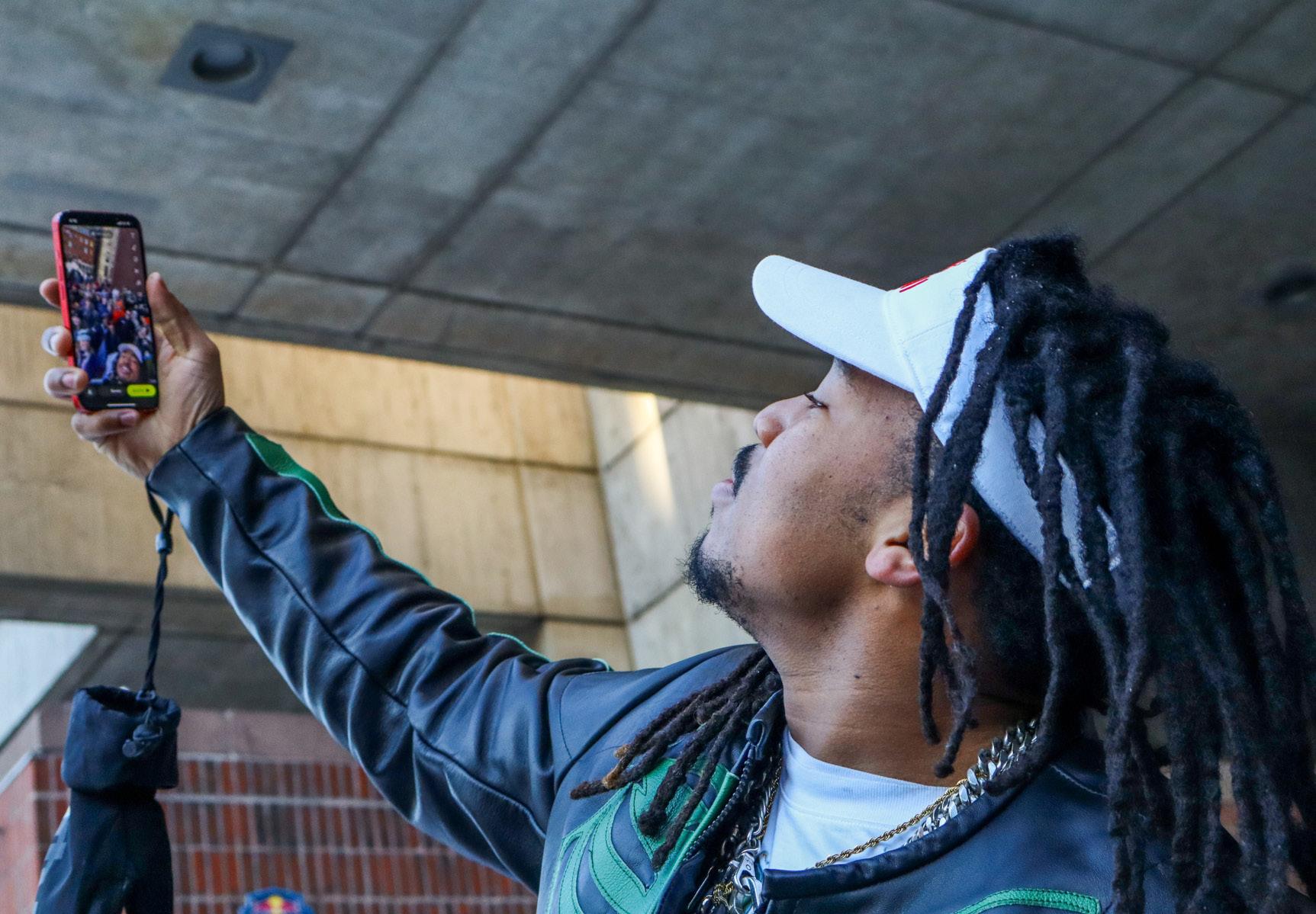 “F–K BU!” he yelled, getting the fans around him to join in on the chant. “F–K BU!”