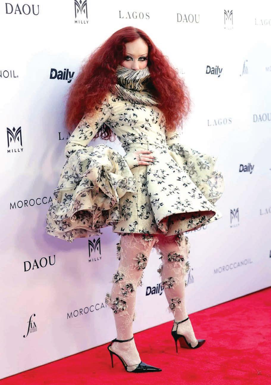 “I met Genesis on my first magazine shoot ever, for V mag. I was so drawn to her because I was kind of scared of her, in the best way. I was like, ‘Oh, she has tattoos. This girl is not afraid of a neck tattoo. I love this.’ And her hair is so long, and beautiful, and black, and I was just mesmerized by how sweet she was to me, because I’d never been treated that way in the fashion industry. It made me realize that maybe this isn’t as exclusive as I thought. We were in a car, a Toyota Camry, and she was dressing me in a ball gown—did not know this bitch at all! Naked, in a Toyota Camry, dressing me in this ball gown on the Hollywood Walk of Fame. It was not chill! This girl was sweet to me, and it’s what I f**king needed. I knew, right then, that what I was missing was feeling understood, and finally, I found her. Finally, I found someone that understood me. And that I didn’t want to be pretty all the time. I wanted to look weird. Ya’ll can’t see my mouth! Whose doing do you think that was? Not mine!”