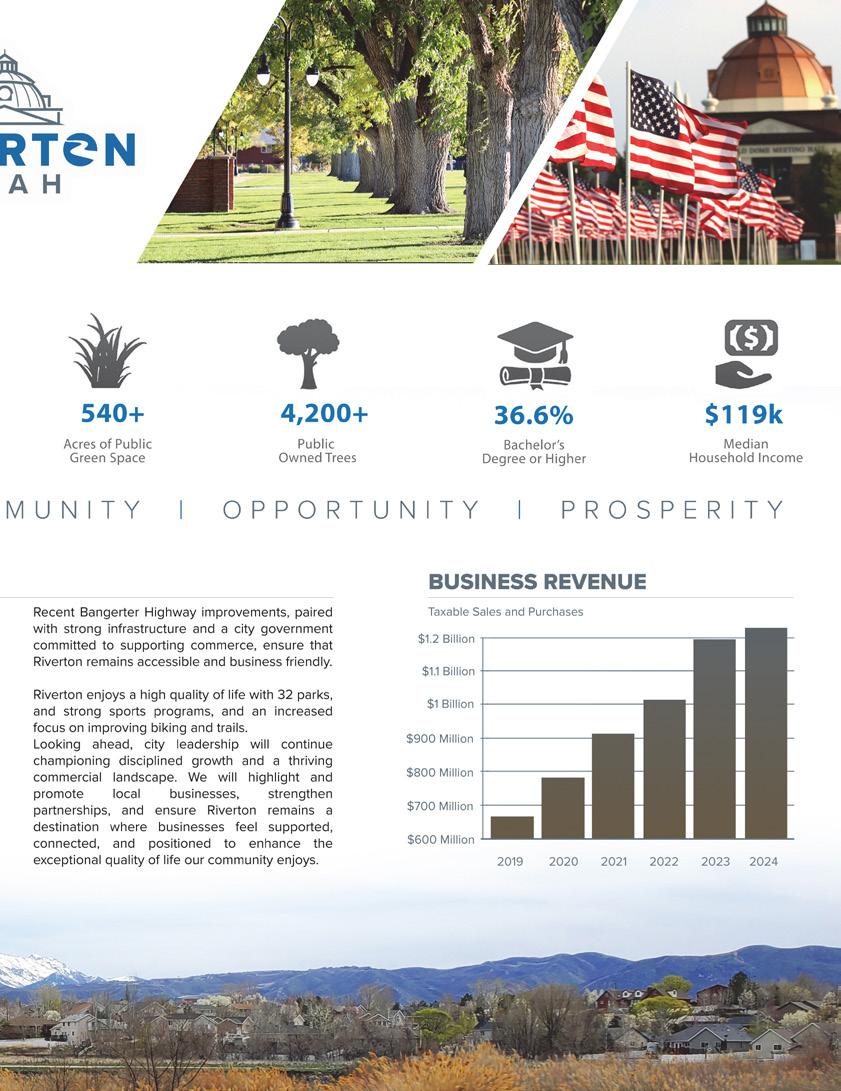 One of the most significant upcoming projects is the development of the new Cottonwood Heights Town Center. Designed as a walkable and mixed-use gathering place, the Town Center will serve as a central hub for retail, dining, office, residential, and community activity. This transformative project creates a true heart of the city, offering new opportunities for businesses to establish storefronts in a highly visible and pedestrianoriented district. With thoughtful design, improved mobility, and active public spaces, the Town Center will become a key economic engine that supports local entrepreneurship, attracts investment, and provides a vibrant destination for residents and visitors.