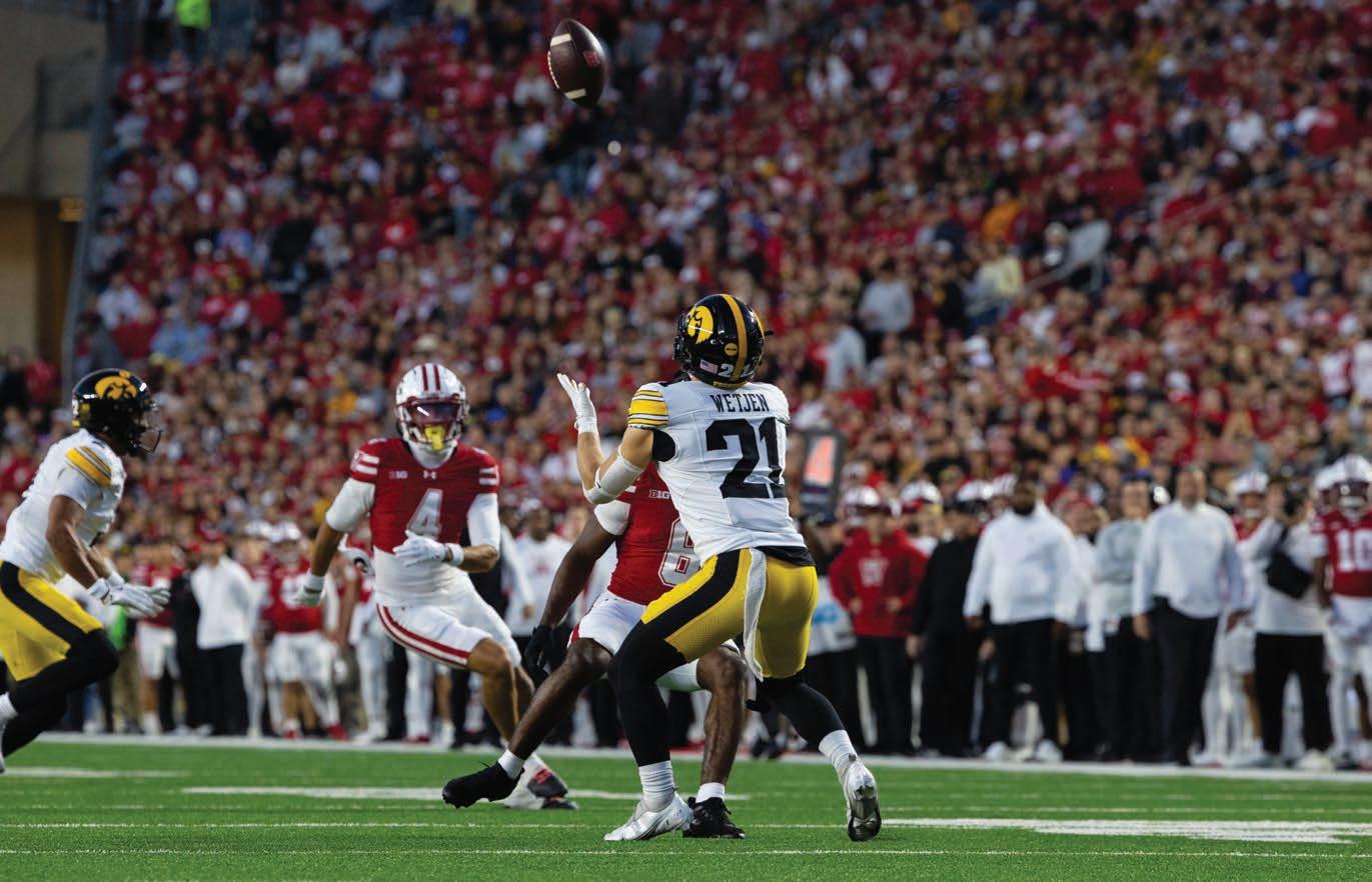 While Wetjen caught passes in high school, his receiving skills needed work, a di cult process while also learning Iowa Western’s offensive scheme. ortunately for Wetjen, his returning skills were easily transferable and just as bold as before. Strohmeier recalled watching opposing coaches grow frustrated with their punters directing the ball to Wetjen, who he remembered as making only two fair catches.