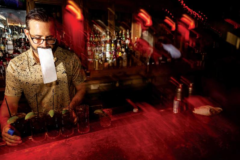 Co-Owner and General Manager Chris Querrey picks up a drink at Wig & Pen