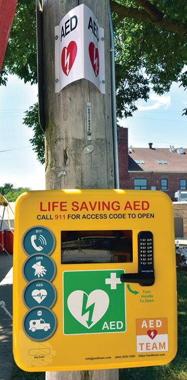 With an initial $10,000 grant, the Rotary-Kerber HeartSafe Community Campaign, partnering with the Johnson County Ambulance Service and staffed by Rotary and other volunteers, was launched in 2019. Since then, Merchant said the campaign has had success with obtaining financial support from donors of about $50,000 per year, allowing the campaign to offer AED packages at an affordable cost to nonprofits and businesses in Johnson County through a costsharing program. According to Merchant, the AED package costs over $2,000 retail, but nonprofits can buy them for $500, small businesses for $600-$750, and large businesses with over 100 employees for $1,000 through the campaign’s cost-sharing AED program. The AED package consists of an AED, an AED wall mounting case, a rescue kit (gloves, scissors, face mask), and wall AED signage.