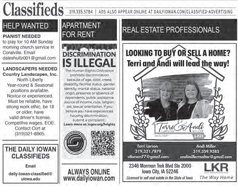 President and Publisher Jason Brummond jason.brummond@dailyiowan.com 319-335-5788