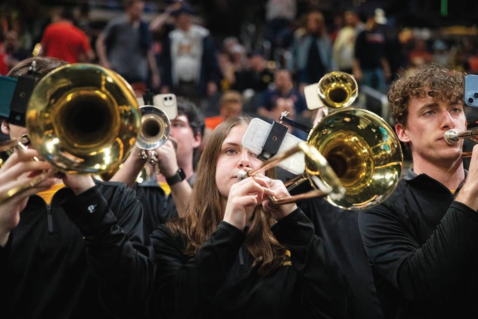 Students involved in the Iowa pep band include second-year mellophone player thyn Tallman. e e plained how prior to the changes, band members could pick and choose which games to perform at. Now, members don’t have the same fle ibility.