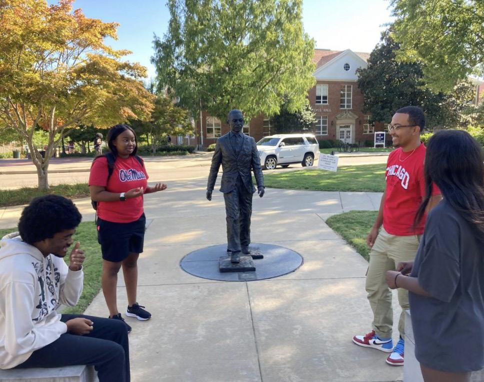 J.R. MULLIGAN thedmfeatures@gmail.comIn the ellipse between the Ly ceum and the J.D. Williams Li brary, there is a statue of a man walking purposefully through an archway of courage, commemo rating James Meredith, the first African-American student to at tend the University of Mississippi.
