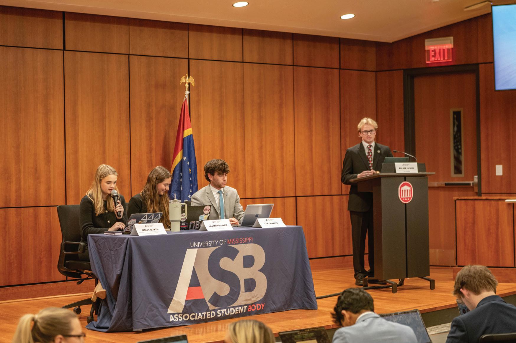 Associated Student Body senators convened in the auditorium of the Gertrude C. Ford Ole Miss Student Union to pass four pieces of legislation, including a bill which called for the adoption of ranked-choice voting in internal elections, during the final formal ASB Senate meeting of the semester on Tuesday, Dec. 2. Senate Bill 25-01CW, motioned to revise the ASB Code to adopt the usage of rankedchoice voting for open-seat senate elections, was the first piece of legislation discussed. Presented by senators Corey Kingery, Kayt Davis, Alex Griggs, Andrew Nichols and Madison Waldrop, the bill aimed to replace the existing plurality voting system.
