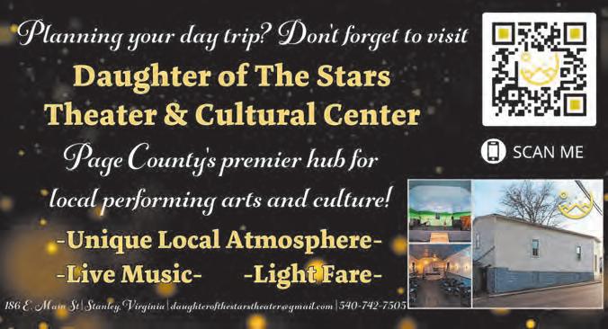 annual Cross Roads Music Fest on Sept. 12 and Oct. 10 in Rebel Park. Celebrating its 11th season, the festival allows music enthusiasts of all ages to pack their chairs and blankets and enjoy music under the stars. Visit newmarketvirginia.com and search the festival.