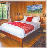 sparkling Cowpasture River running through it — and beyond the boundary is national forest land. Owned by the Cowden family for more than 65 years, it offers miles of hiking and mountain biking trails, swimming, kayaking, incredible farm-to-table food and unique accommodations, including rooms in the main lodge and its attached silo, a Riverside House and private cabins.
