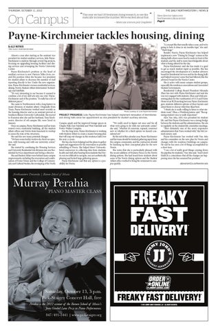 “A concept like that usually takes a year, and we’re going to have it done in six months tops,” she said. “That’s huge.” Besides Norris, Payne-Kirchmeier has helped implement a new “Dining by Design” system in the dining halls where more food is made in front of the students and the staff is more knowledgeable about what is being offered for the day. Payne-Kirchmeier said she has made it a goal to get as much student input as possible. She has encouraged the development of a student advisory board for Residential Services and for the dining halls and helped resurrect some that had faltered, like the advisory board for the Norris Center. She is active with many campus student groups, especially the residences associations and Associated Student Government. Residential College Board President Miranda Zhao has met with Payne-Kirchmeier and said she was very engaged with students. Zhao said while presenting plans for the combination of CCS and Foster House at an RCB meeting last year, Payne-Kirchmeier gave students different options of floor layouts and asked them to choose what they liked best. “I think she is really willing to listen to what students want,” Zhao, a Weinberg junior, said. “Recognizing student voice is really important.” Alex Van Atta, ASG vice president for student life, said that Payne-Kirchmeier was a strong bridge between the students and the administration. She sits in regularly on the student life committee meetings. “She’s definitely one of the most responsive administrators that I have worked with,” the McCormick junior, said. Payne-Kirchmeier has worked with Van Atta and his committee on the new plan for Norris and changes with the residence buildings on campus. He said he has seen a lot of things accomplished in a short time. “I see a lot of really good things coming down the pipeline for students,” Van Atta said. “And I don’t think it’s a coincidence that all the changes are happening since she has assumed her position.” allymutnick@u.northwestern.edu
