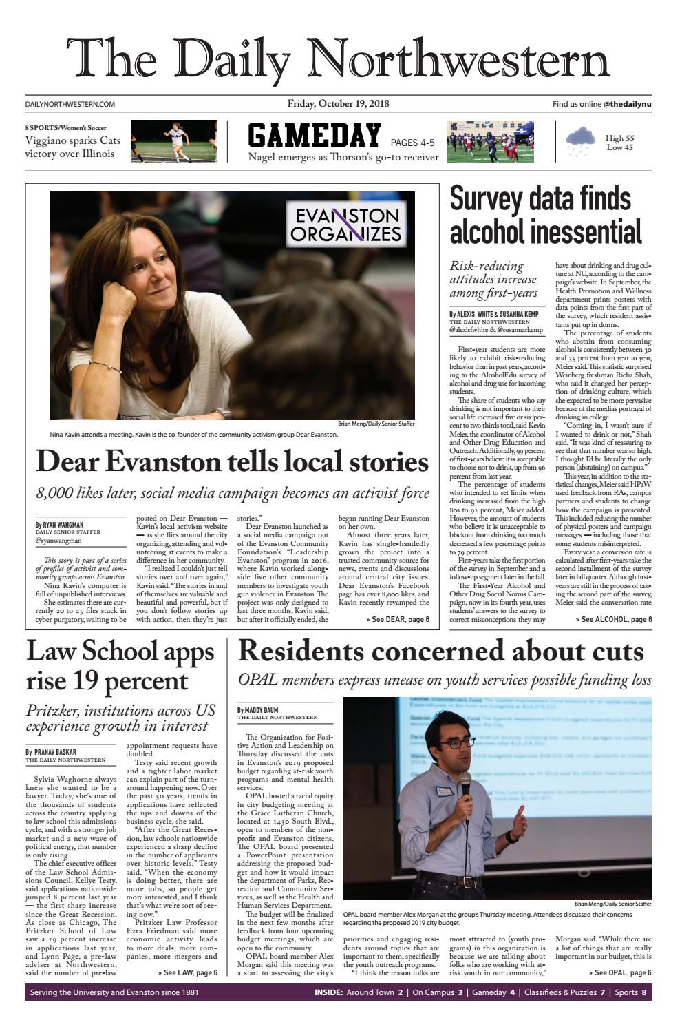 The Daily Northwestern Friday, October 19, 2018