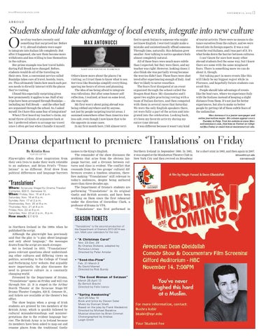 Drama department to premiere ‘Translations’ on Friday By Kristin Ross FEATURE EDITOR