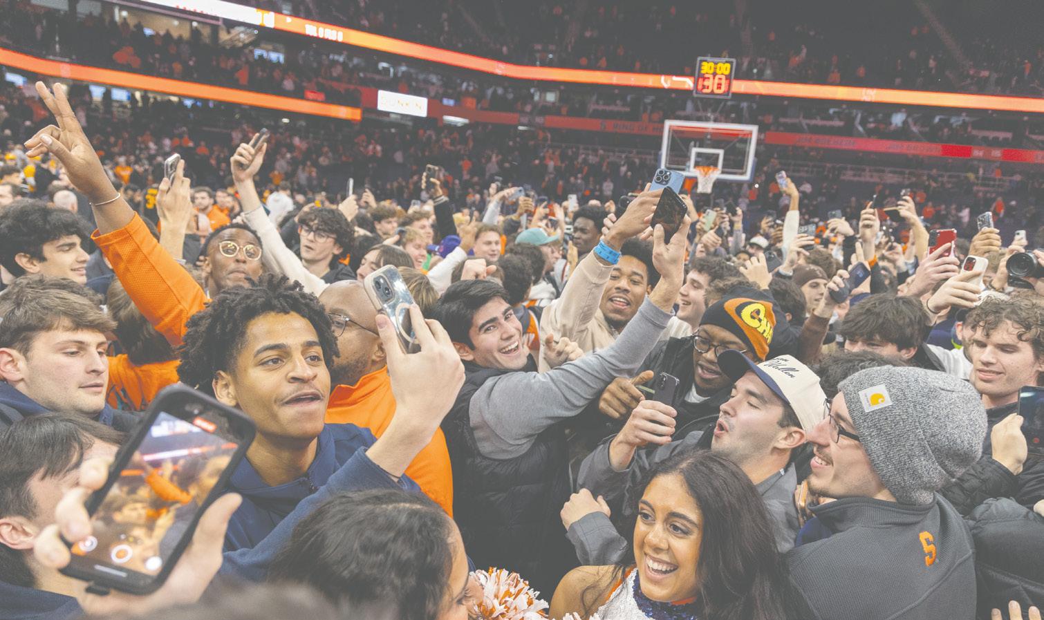 Defensively, Starling often disrupted Tennessee star freshman Nate Ament, stalling him despite a six-inch difference in height. The Baldwinsville native experienced a court storm in 2024, when he sealed a win over then-No. 7 North Carolina with free throws. As the Orange trailed 56-55 with under see tennessee page 12
