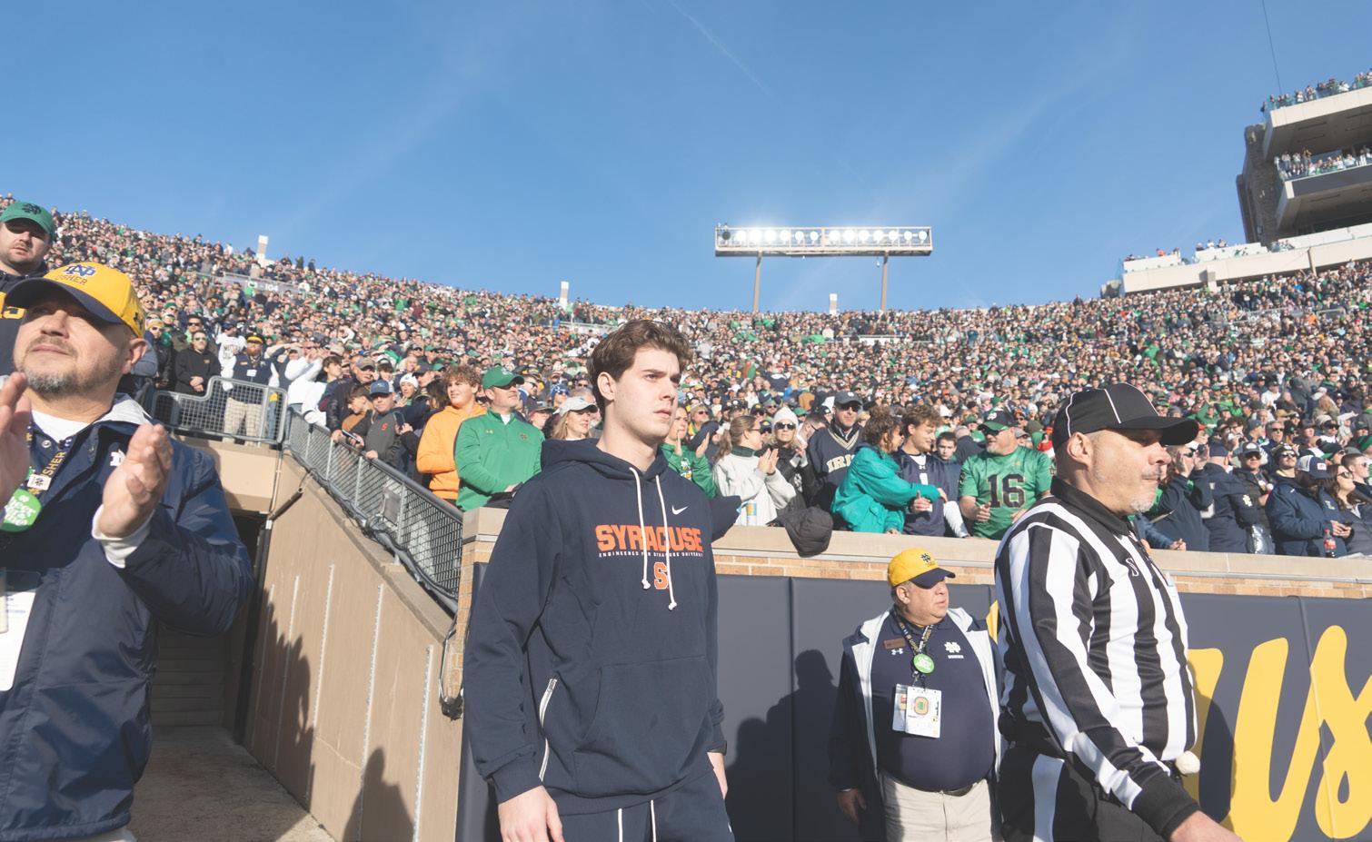 After tearing his Achilles on Sept. 20 at Clemson, Steve Angeli has been spotted on Syracuse’s sideline frequently this season amid his recovery.