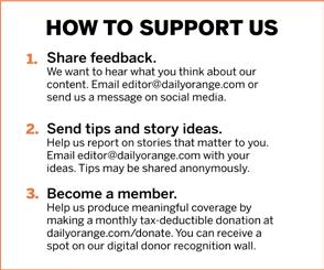 To show your support to The D.O.’s independent journalism, please visit dailyorange.com/donate. Donations are tax deductible.