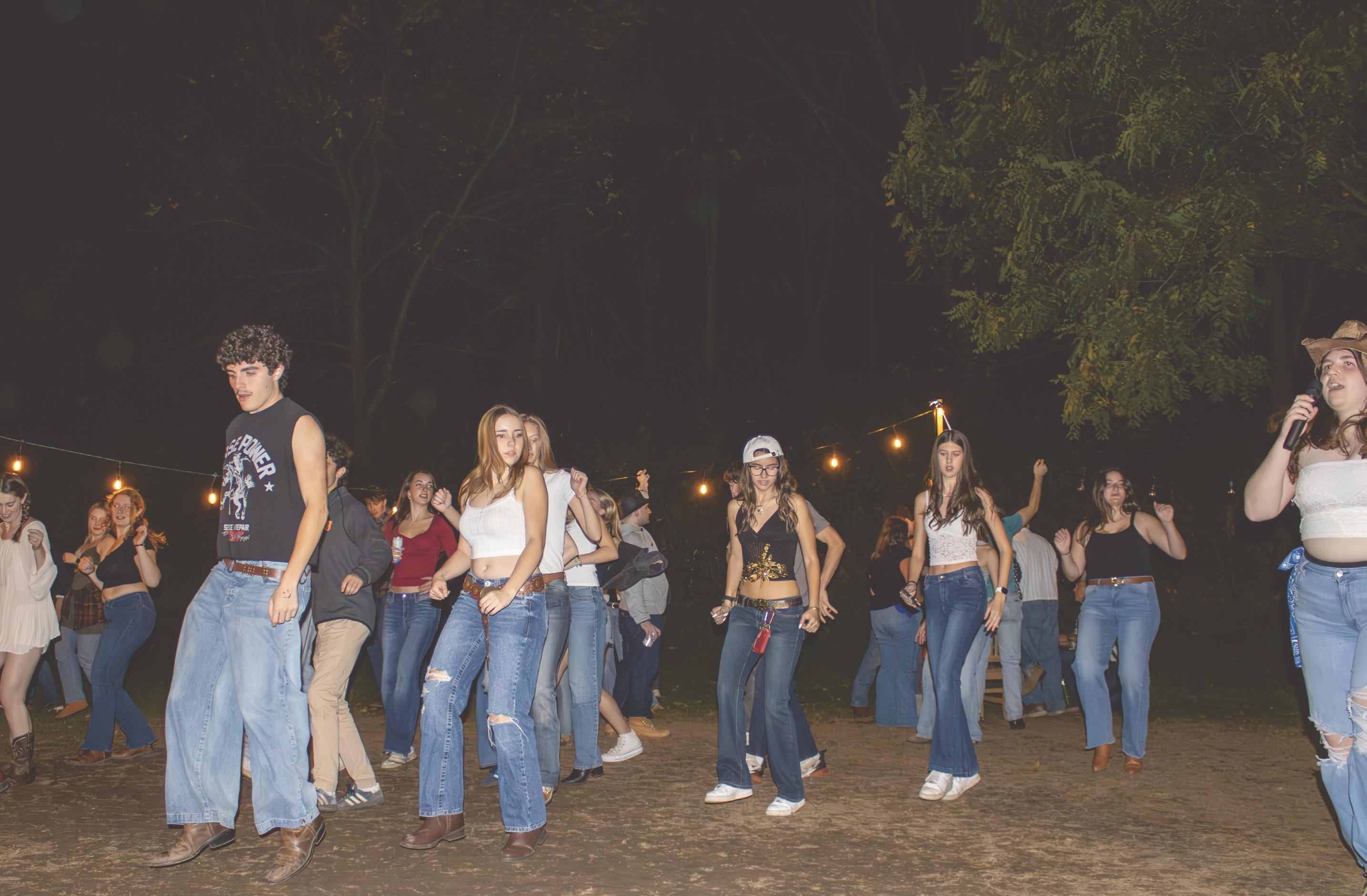 C • Western hospitality Inspired by their Western roots, Xavier and Jackson Carrier host line dancing events in Xavier’s South Campus backyard.