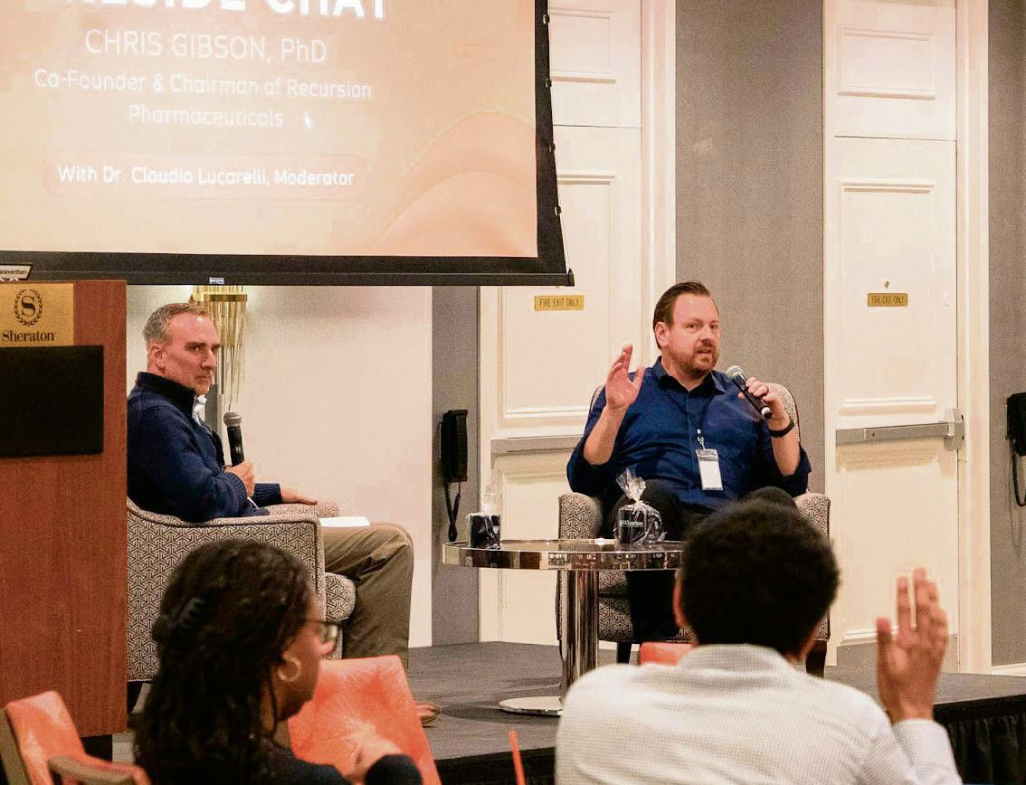 The conference’s keynote speaker was Chris Gibson, founder and former CEO of Recursion — a “TechBio company.”