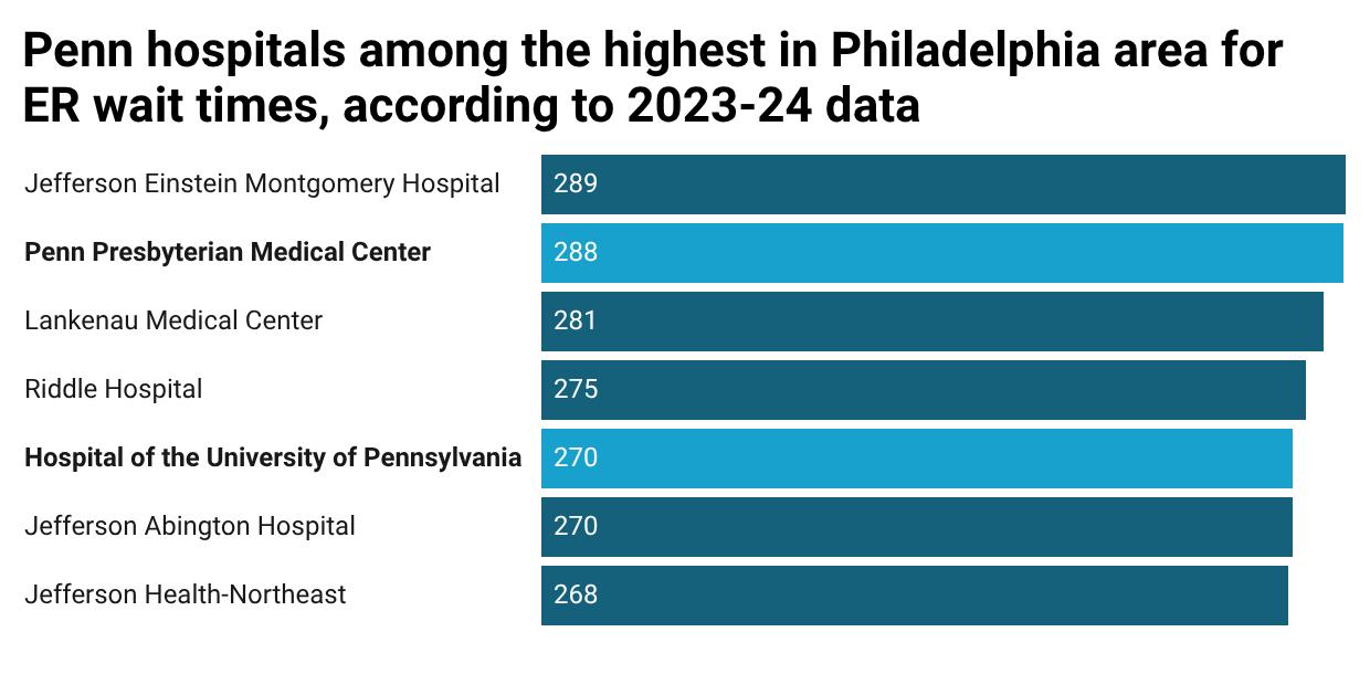 Wait times at Penn’s two primary on-campus hospitals ranked second and fifth in the Philadelphia area