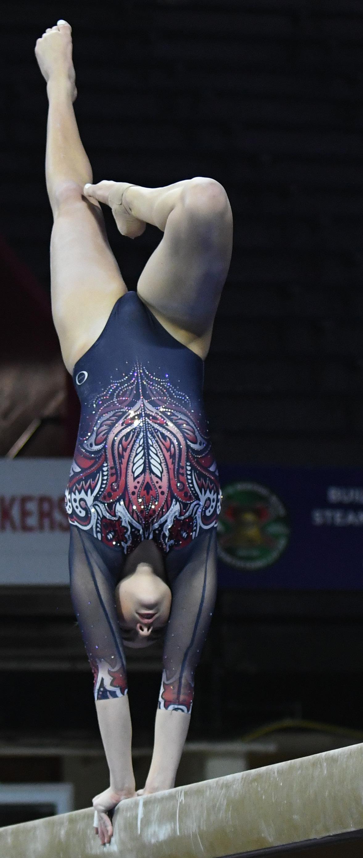 Sophomore Zara Gazdak performs her beam routine during the Red & Blue Intrasquad meet on Dec. 11, 2022.