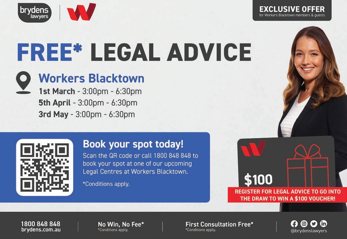 To maintain the high standard enjoyed in our Clubs we request the Dress Rules be abided by. THE FOLLOWING DRESS IS NOT PERMITTED AT ANY TIME. NO OFFENSIVE CLOTHING NO UNTIDY OR DIRTY CLOTHING NO SINGLETS NO HATS NO TORN OR DIRTY SHOES NO BARE FEET NO FOOTY SHORTS CLUB DRESS RULES Help is close at hand. GAMBLEAWARE gambleaware.nsw.gov.au | 1800 858 858 Information correct at time of printing February 2023 If gambling is creating a problem in your life help is available. Contact the 24 hour free confidential counselling service on 1800 BETSAFE (1800 238 7233). Player activity statements are available on request. www.workerslifestylegroup.com.au | info@workerslifestylegroup.com.au Workers Sports 170 Reservoir Road Blacktown NSW 2148 02 8822 2444 Workers Blacktown 55 Campbell Street Blacktown NSW 2148 02 9830 0600 Workers Hubertus 205 Adams Road Luddenham NSW 2745 02 4773 4444 51 Talk of the town | Autumn Issue