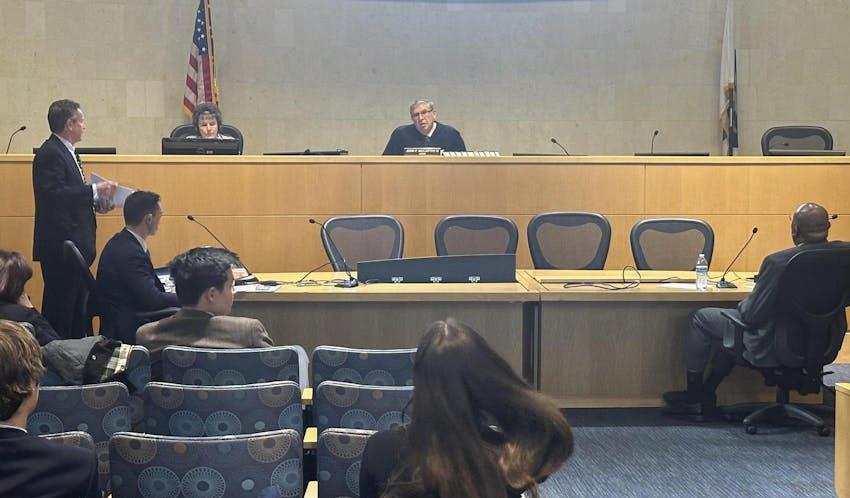 CHRISTOPHER BAO / THE DAILY PRINCETONIAN Piegaro, seated at the left end of the table, at his Feb. 4 trial.