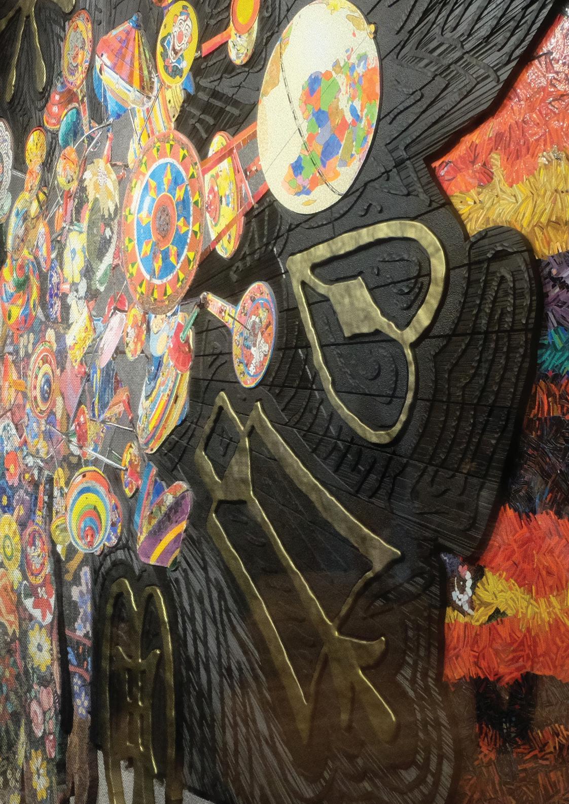 art as a commodity. The art seems set into motion, transforming into a bank note. In his scrawling artistic style, Basquiat weaves haphazardly placed words together under the theme of transaction. The word “PLUTO” is repeatedly crossed out and rewritten with a copyright symbol. Meanwhile, the words “LEECHES,” “FLEAS,” and “DEHYDRATED” are painted on the right side of the canvas — which implies that creating art under the pressure of art collectors can suck the creativity from the art-making process. A frenzied anatomical figure takes charge of the center of the canvas, while the phrase “study of the male torso” is written on the right — possibly an allusion to da Vinci’s anatomical drawings.