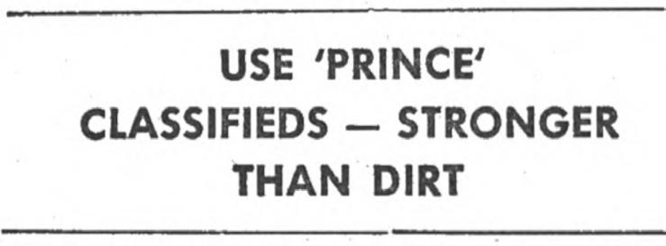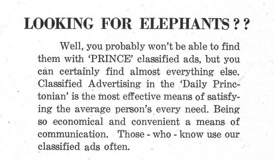 “LOOKING FOR ELEPHANTS? WELL, YOU PROBABLY WON’T BE ABLE TO FIND THEM WITH ‘PRINCE’ CLASSIFIED ADS, BUT YOU CAN ALMOST CERTAINLY FIND ALMOST EVERYTHING ELSE.”