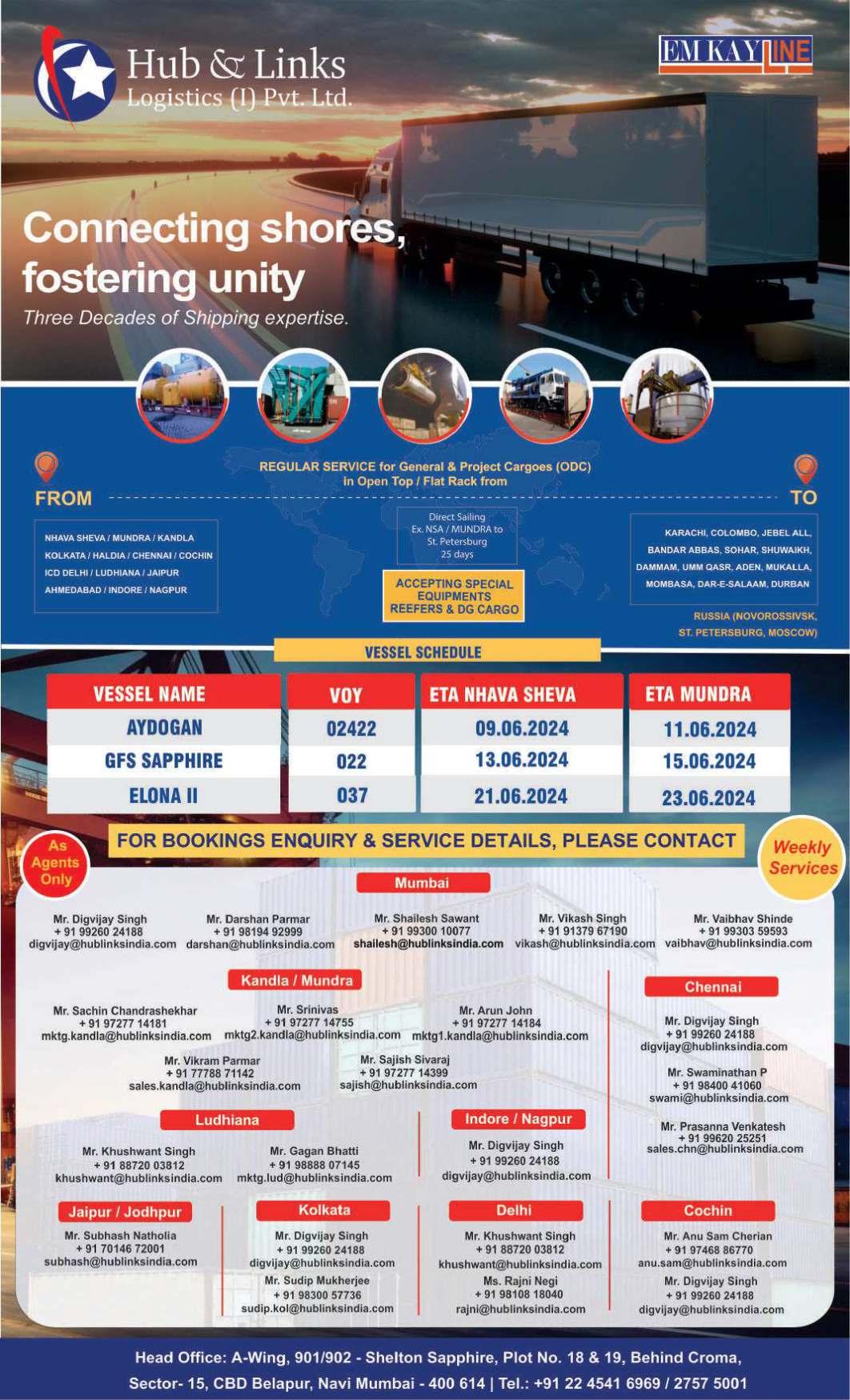 The above vessel is arriving on 08-06-2024 at MUNDRA PORT with Import cargo to MUNDRA from SHUWAIKH, SAVANNAH, DURBAN.