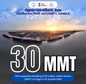 G A N D H I D H A M : DPA has successfully surpassed the handling of 30 million metric t o n n e s ( M M T ) o f cargo in 1st quarter itself.